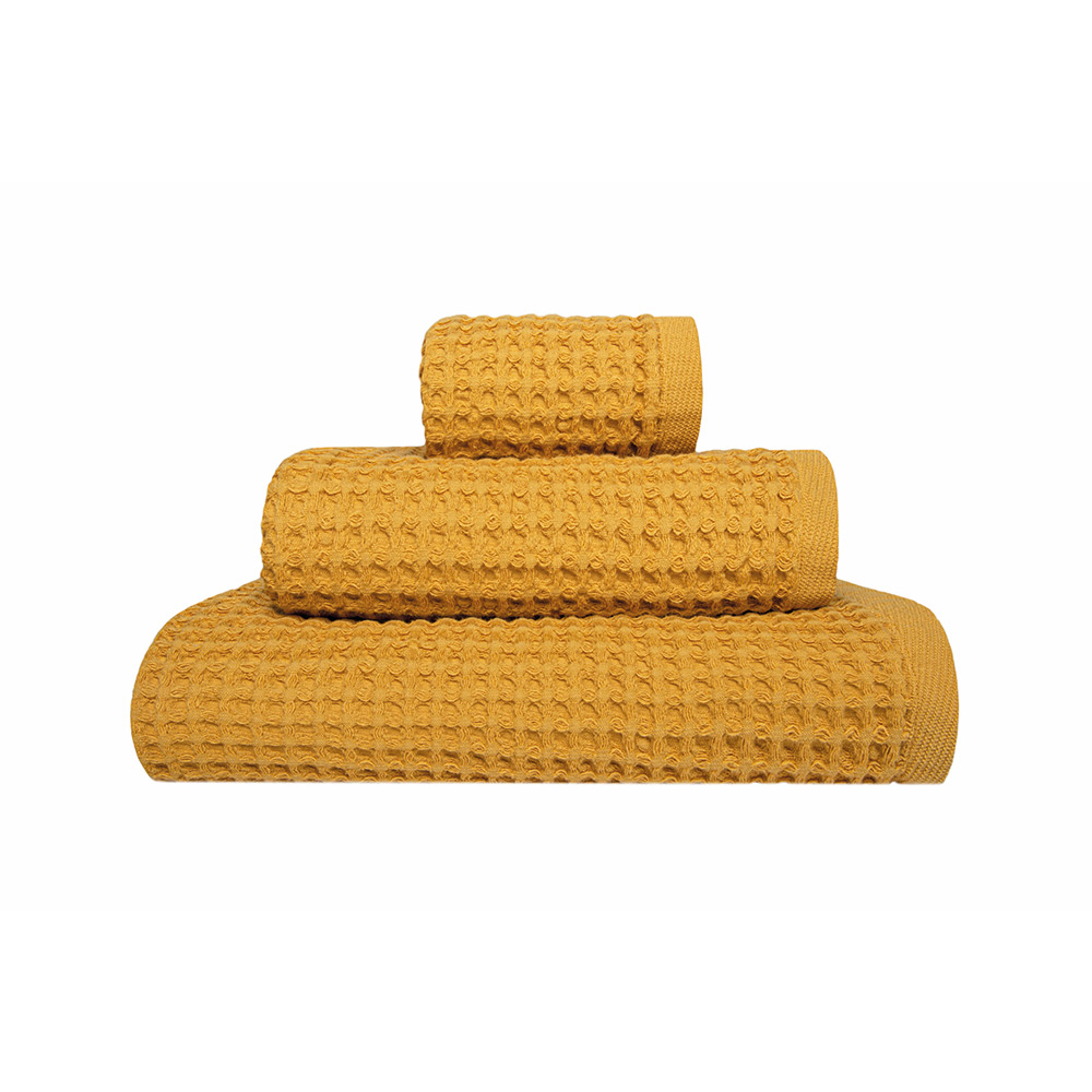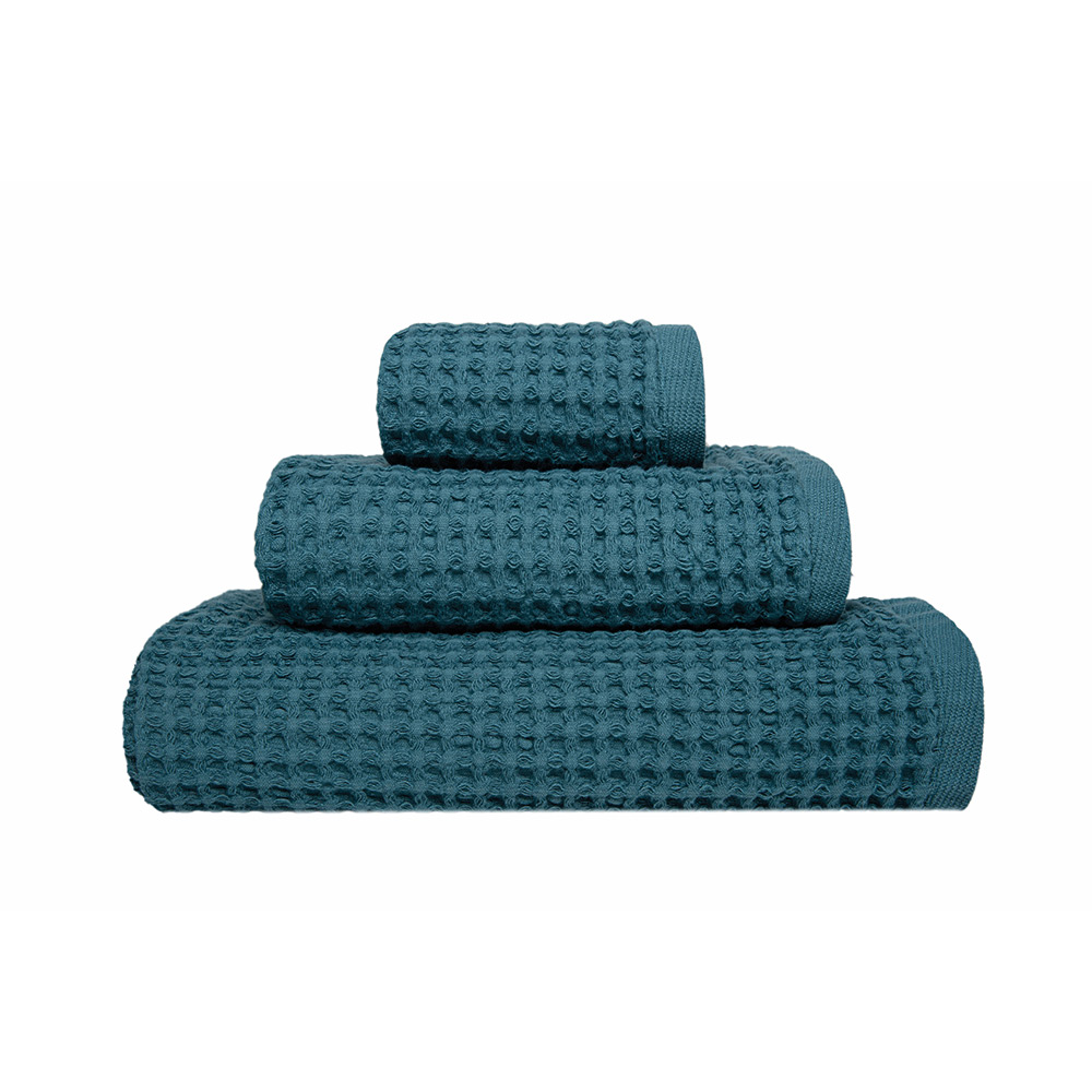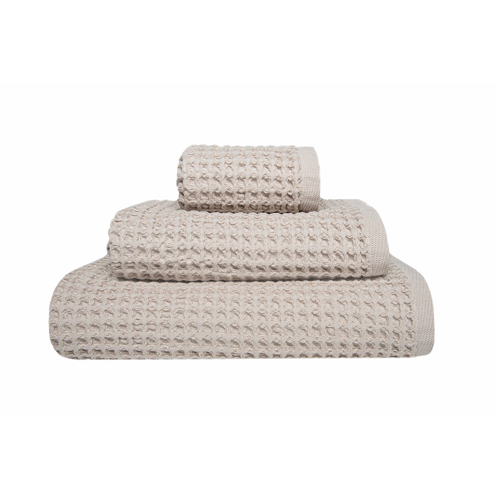 Handduk Favo från Sorema är tillverkad i 100% bomull, 420 gr/m2. Med sin moderna våfflade struktur är den superabsorberande, mjuk, extremt lätt och snabbtorkande.