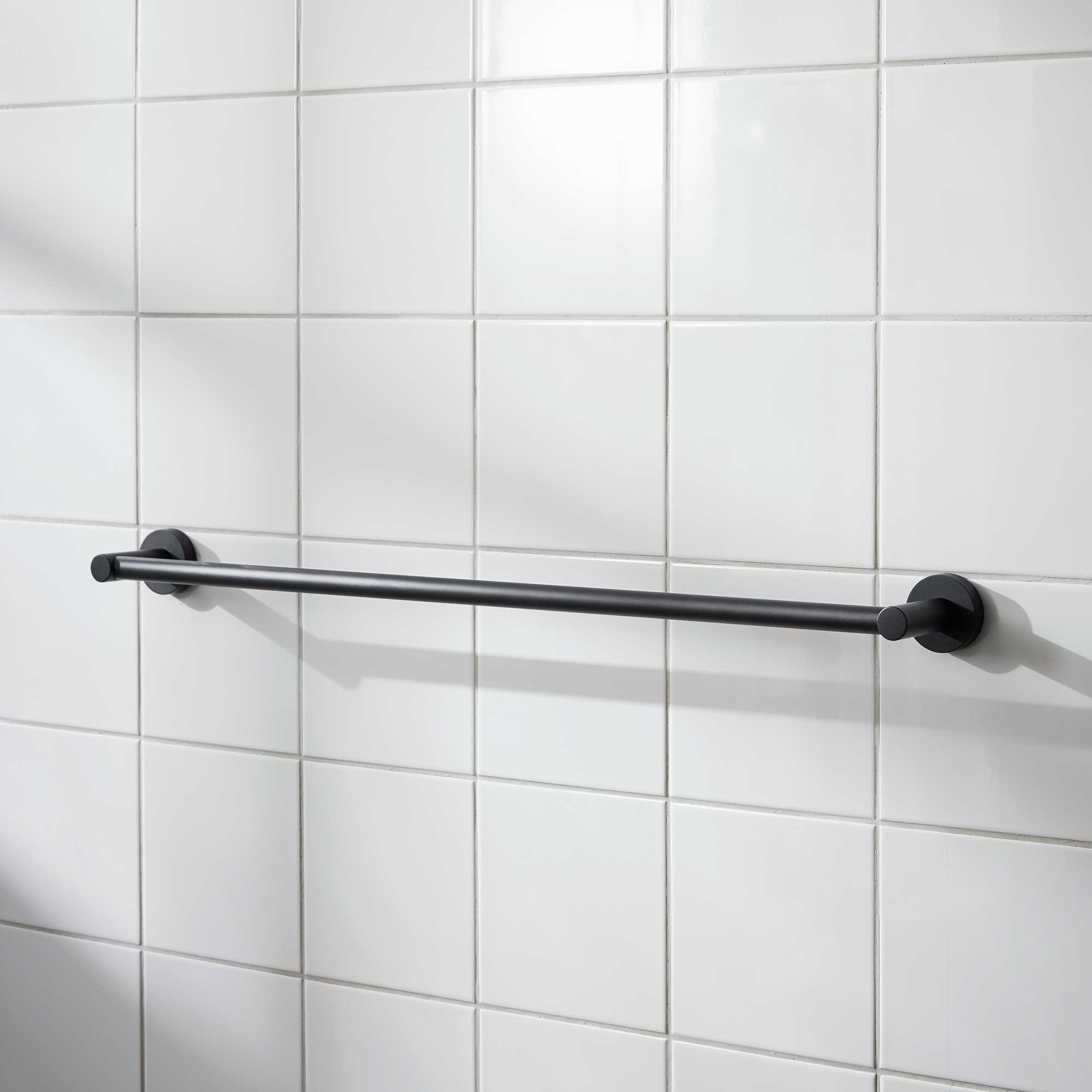 Handduksstång från Miller Badrum. Väggplattans diameter är 45 mm. Serien Bond finns i flera utföranden.