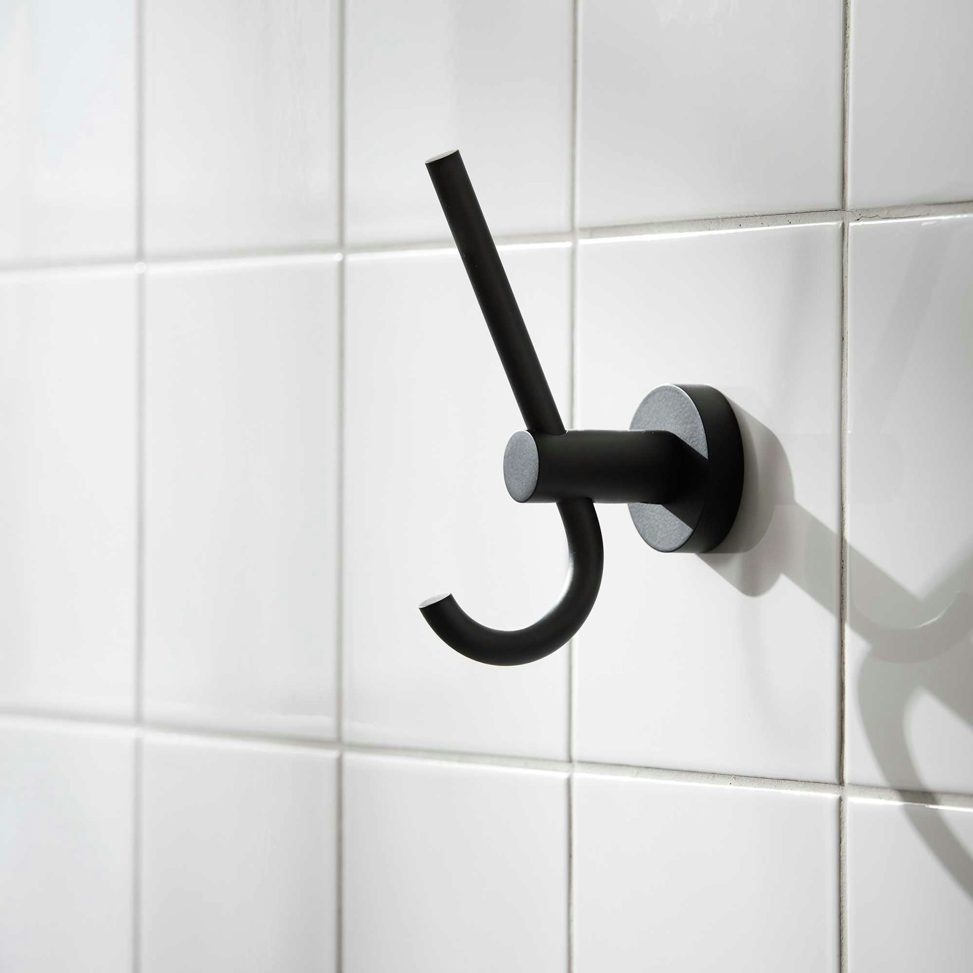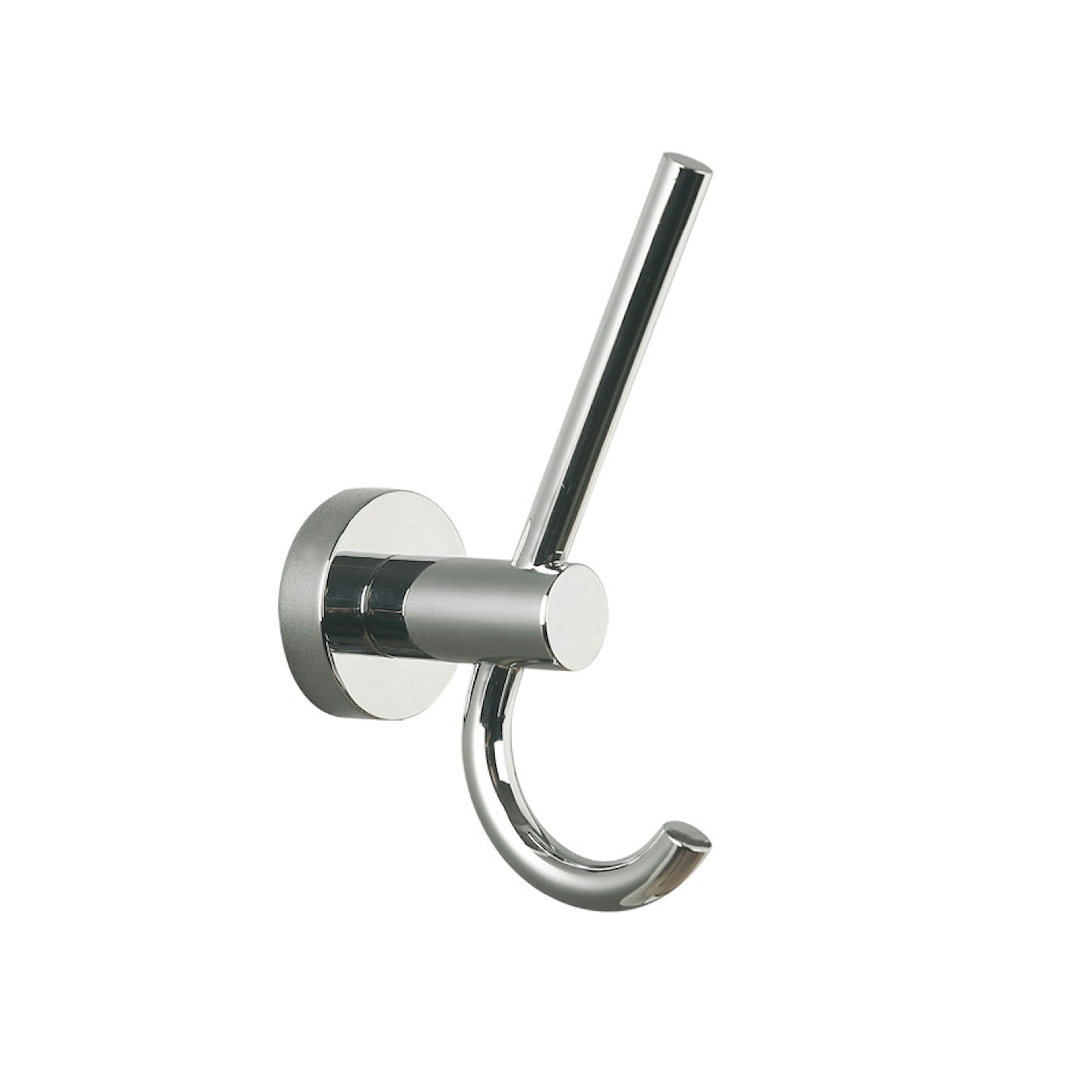 Klädkrok från Miller Badrum. Väggplattans diameter är 45 mm. Serien Bond finns i flera utföranden.