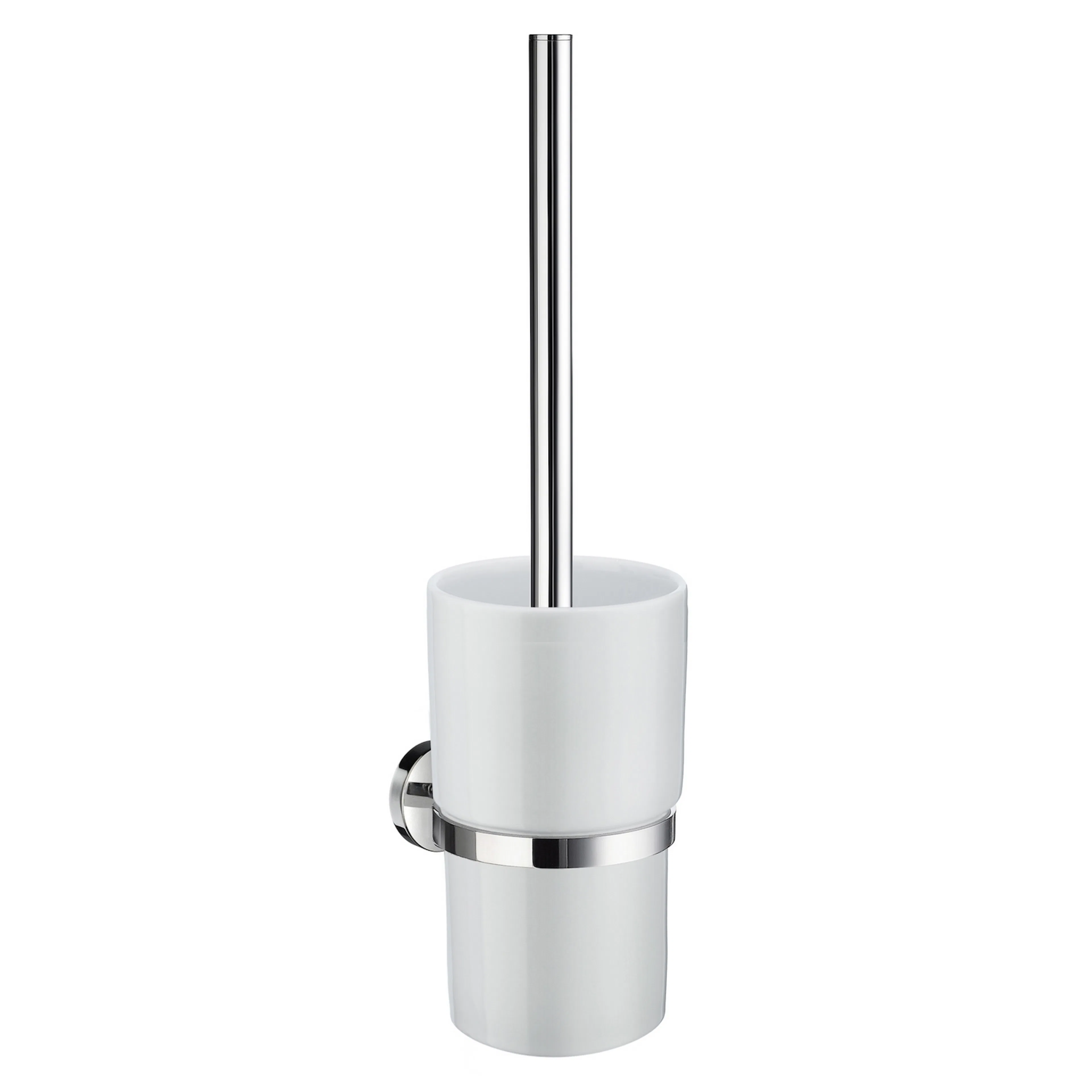 Toalettborste Smedbo Home H333P är en stilren WC-borste med kopp för väggmontering. Den har en behållare av porslin. Den skruvas upp på väggen med dold montering. Borsten är utbytbar.