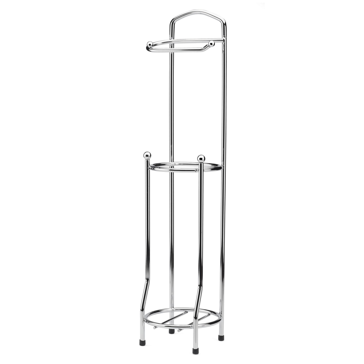 Golvstående toalettpappersställ med plats för tre extra rullar. Tidlös design.