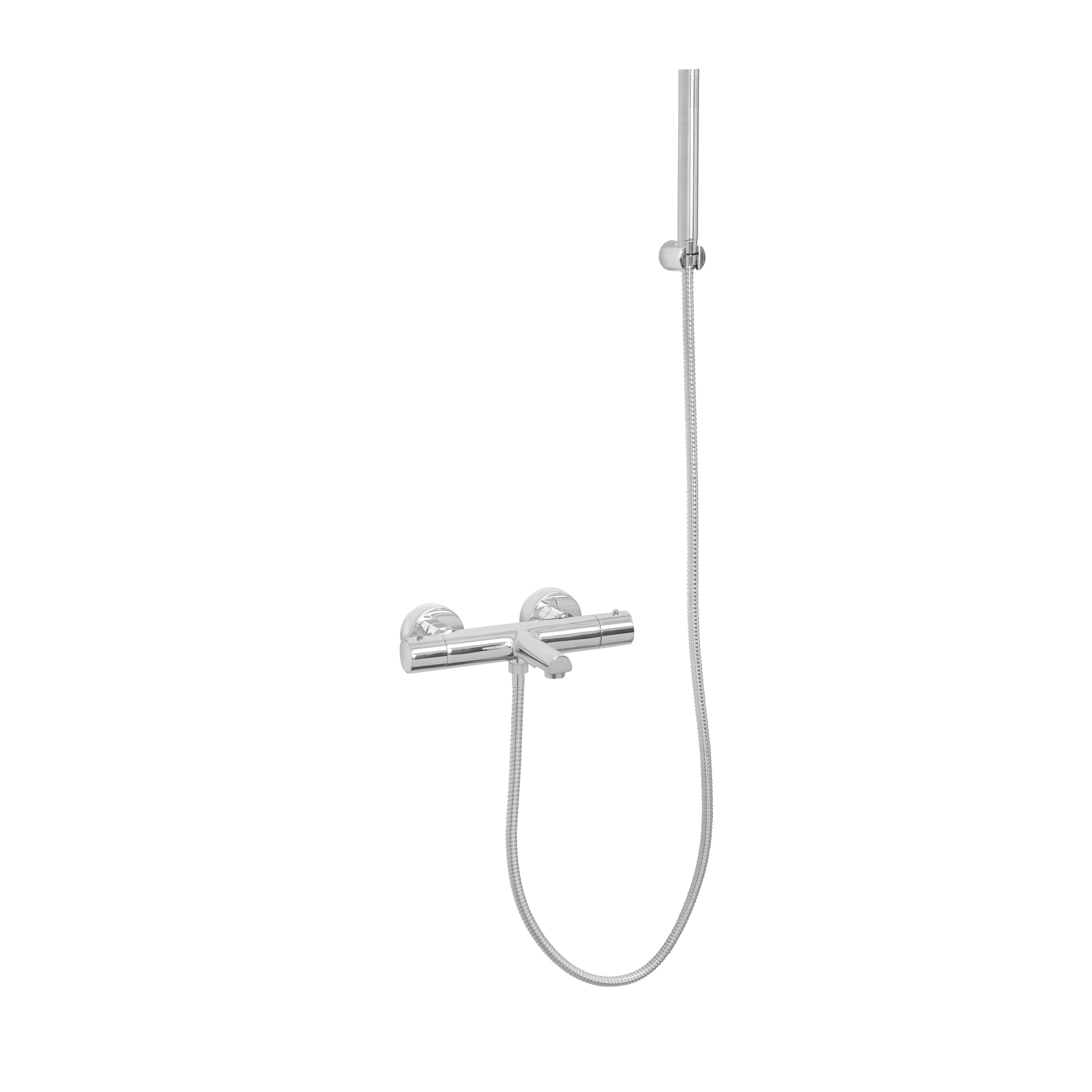 Badkarsblandare Turano från LH är en modern termostatblandare med badkarspip (piputsprång: 174 mm). Blandaren levereras med pinnhanddusch, duschslang och väggfäste.