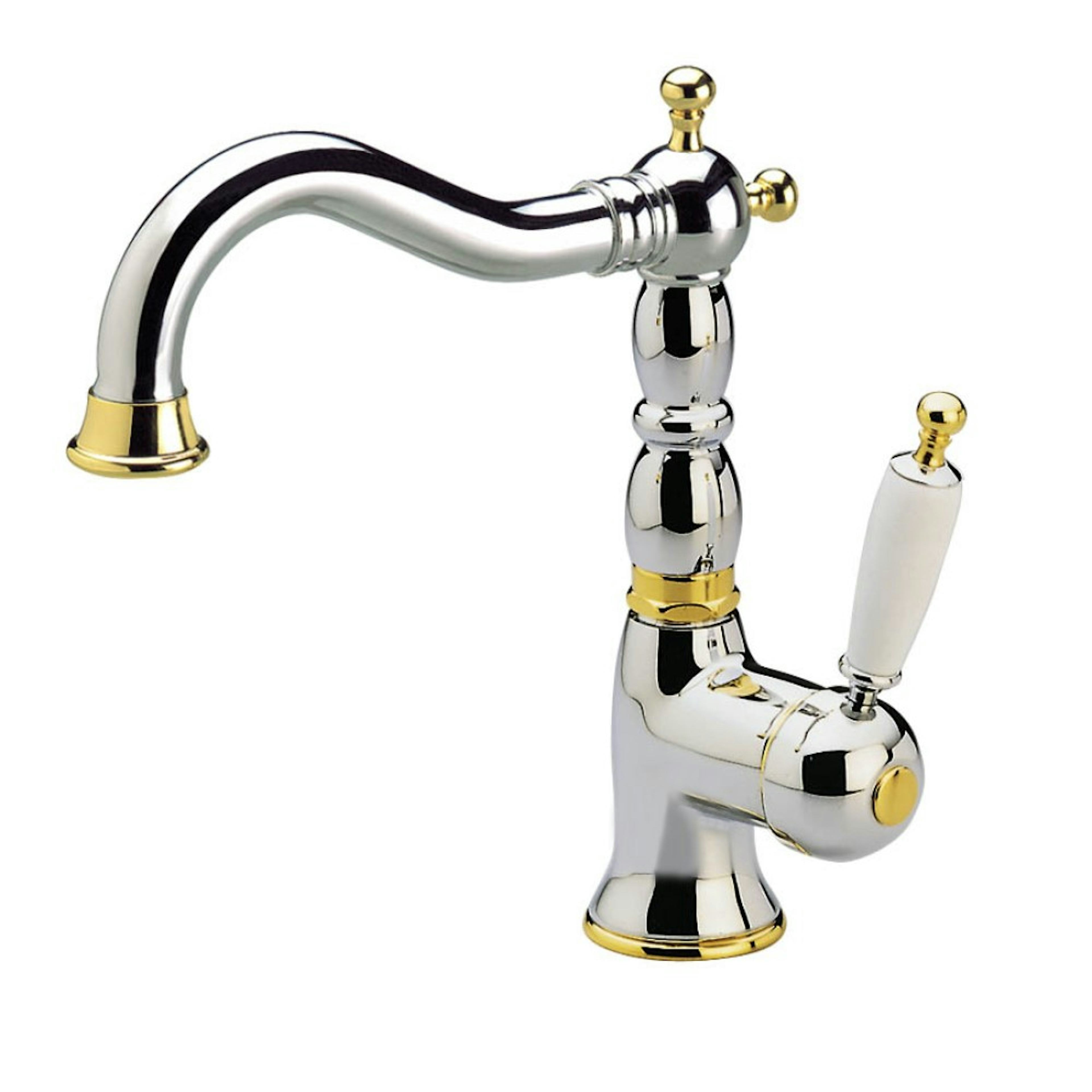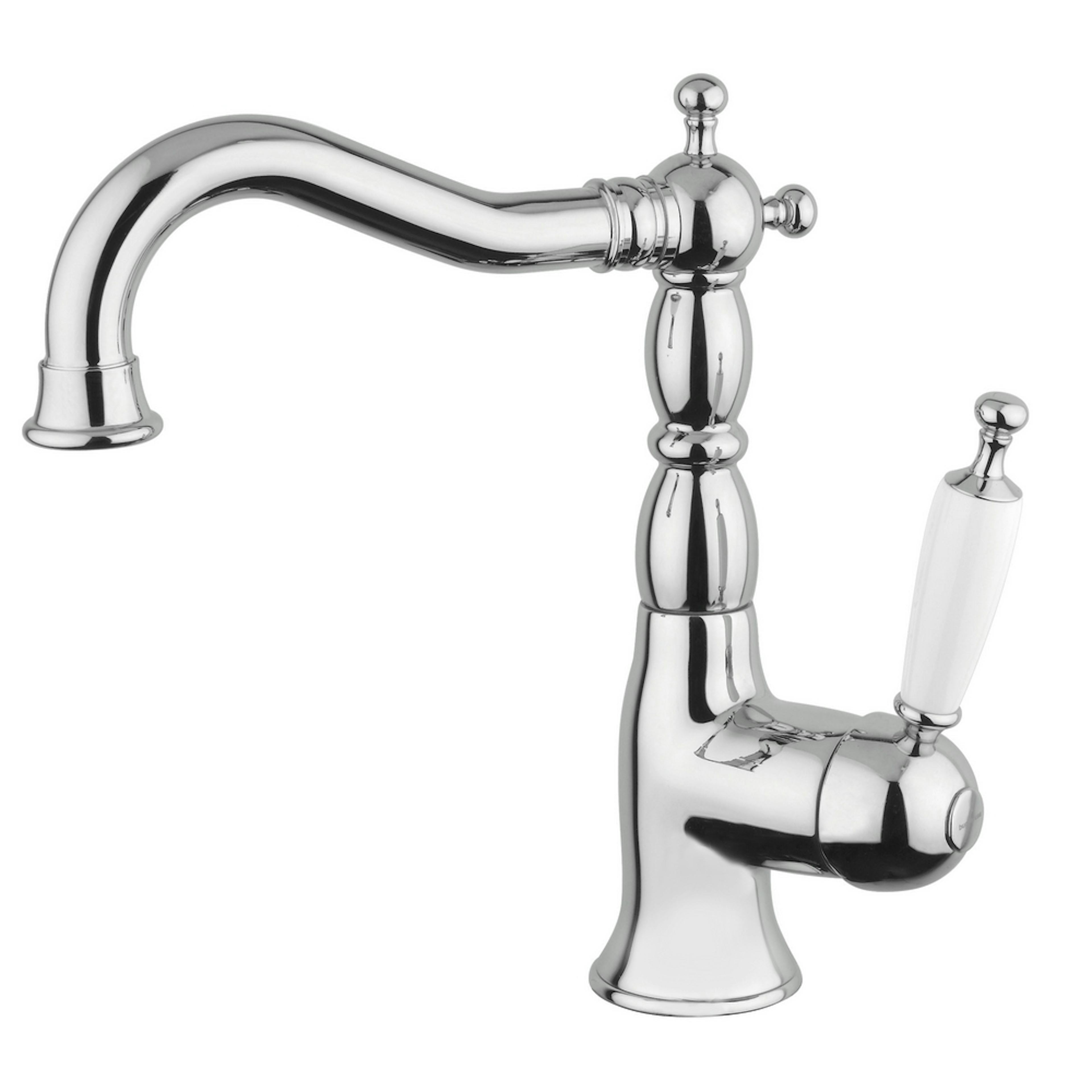 Tvättställsblandare Oxford 245 mm från Duschbyggarna är en 1-grepps tvättställsblandare utan lyftventil. Denna retroinspirerade tvättställsblandare har ett vackert vred och en mjukt böjd kran. OBS! Håltagning 33-35 mm.