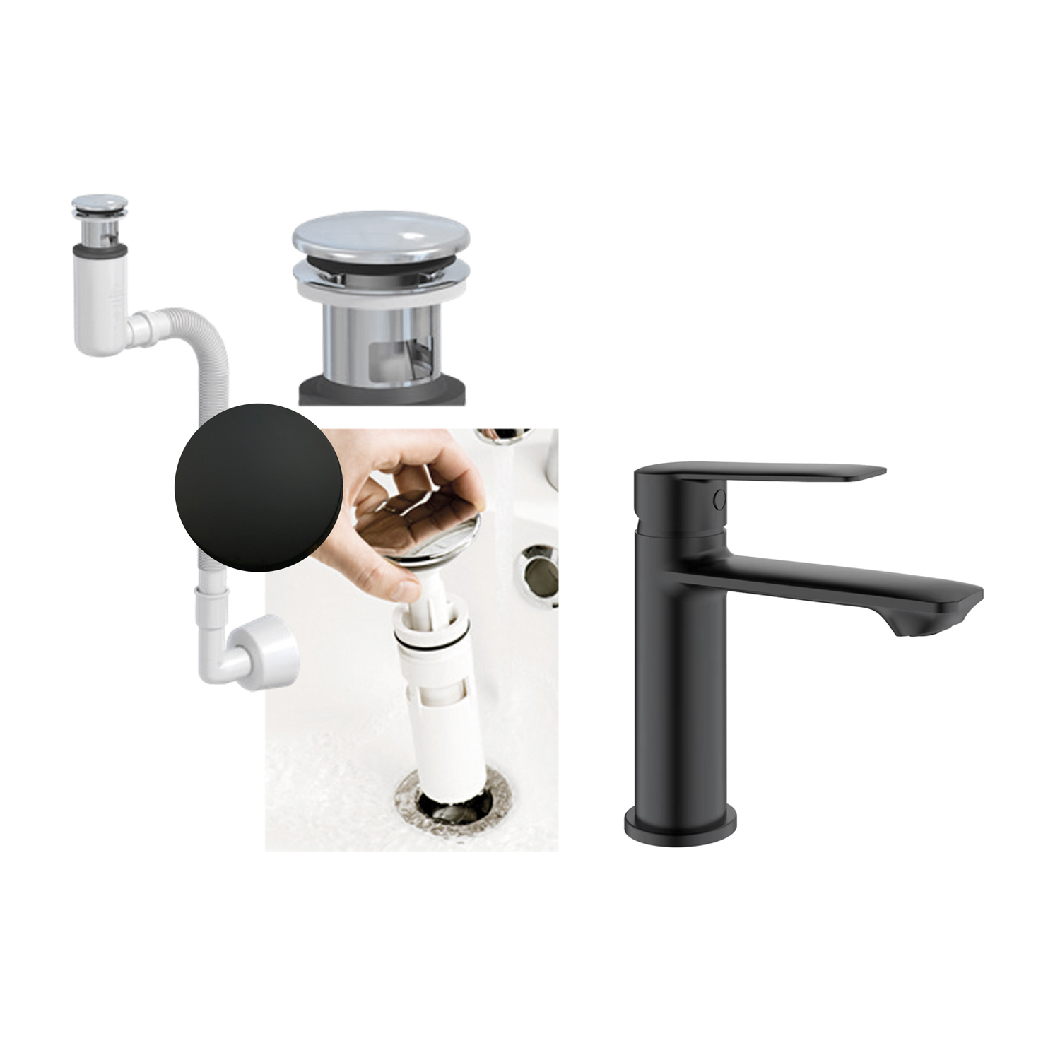 Tvättställsblandare Macro Design Taro med Vattenlås och Bottenventil Pop-Up EasyClean är en elegant och funktionell kombination från Macro Design. Paketet innehåller den stilrena och användarvänliga tvättställsblandaren Taro tillsammans med den smidiga bottenventilen Pop-Up EasyClean. En perfekt lösning för ditt moderna badrum där design möter enkelhet.