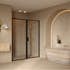 Den fasta duschväggen är fastsatt på väggfästena med självborrande skruvar. Dörrpanelen är monterad på andra sidan av utrymmet med väggfästen. Stödstången sätts upp från den övre kanten av den fasta panelen och skruvas in i byggnadens vägg. Magnettätning installeras på varje dörröppning för att hålla dörren tätt stängd. Sockeltätning kan fästas på panelerna och en tröskelprofil kan installeras under dörrpanelerna för att förbättra vattentätningen.