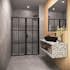 Duschdörr Hietakari Bläk 750 Paris Nisch består av en fast vägg och en vändbar dörr i industriell stil. Den fasta väggen förses med en golvlist som har 7 mm höjdtolerans, golvlisten monteras i golvet under den fasta duschpanelen. Ifall högre lutning finns bör produkten beställas med justeringsfot, då sockeltätning tillkommer. Den fasta duschväggen hålls stabil tack vare det sneda sidostaget. Istället för det sneda sidostaget, kan man välja duschväggen med ett långt sidostag, som installeras i 90 graders vinkel, finns att välja som tillval. Den vändbara duschdörren skyddar effektivt mot vattenstänk då den monteras med en tillkommande släptätningslist. Duschdörren förses med justerbar centrering och är försedd med lyftgångjärn.