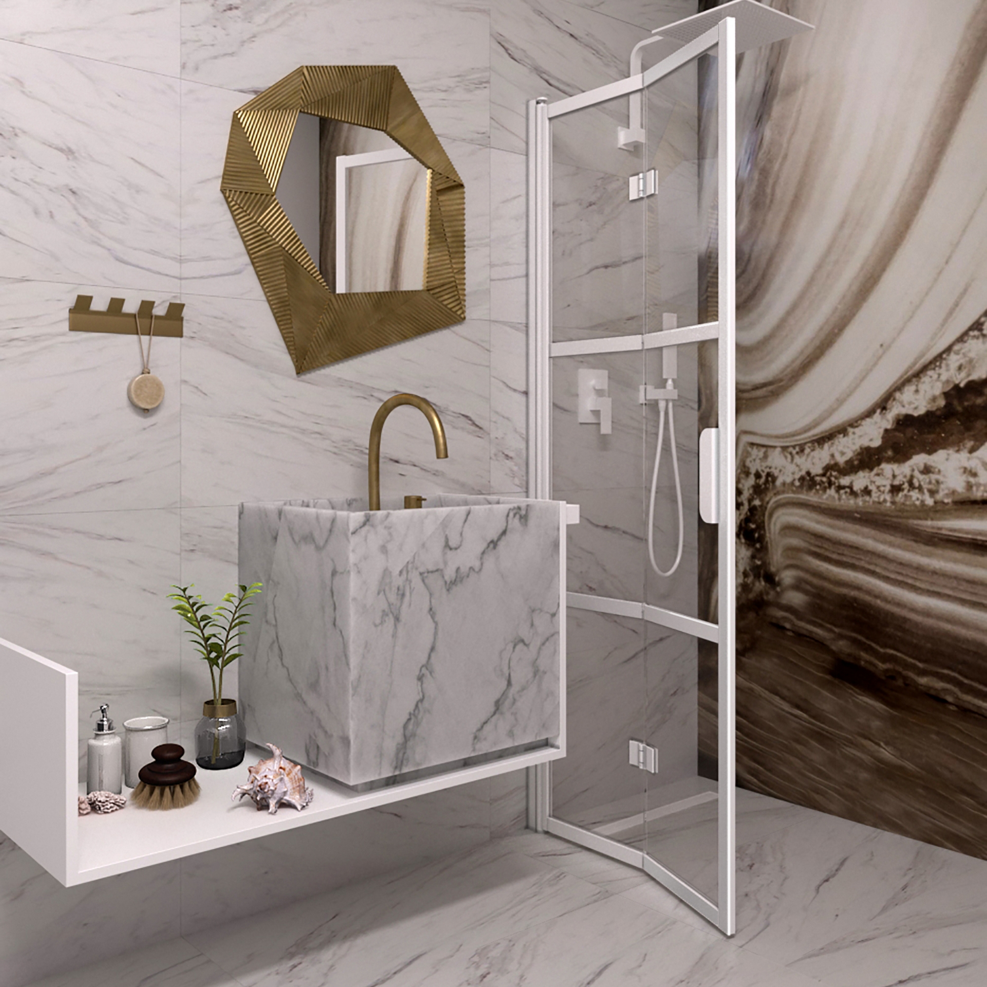 Duschdörr Hietakari Bläk 882 Tokyo Vikbar är en vikbar duschdörr i industriell stil. Den vikbara duschdörren skyddar effektivt mot vattenstänk då den monteras med en tillkommande släptätningslist. När duschen inte används kan duschdörren vändas och vikas ihop mot väggen. Duschdörren vänds 90 grader i bägge riktningarna och förses med justerbar centrering. Centreringen strävar efter att återställa duschdörren till öppen respektive stängd position. Dörren är försedd med lyftgångjärn.