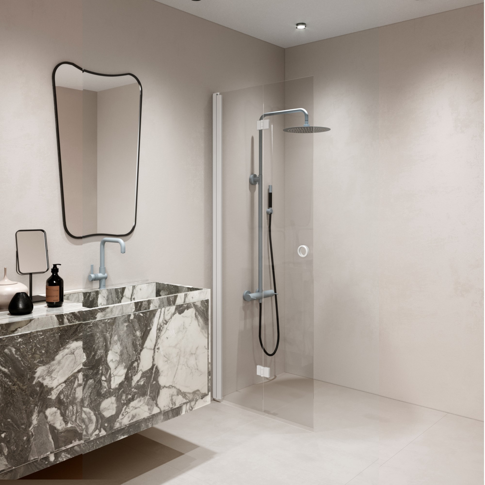 Duschdörr Hietakari Forma 303 är en vikbar duschdörr med stilren design. Den vikbara duschdörren skyddar effektivt mot vattenstänk då den monteras med den 28 mm höga släptätningslisten som medföljer som standard. Det finns en 50 mm hög släptätning att beställa som tillval när golvlutningen är större än normalt.