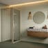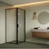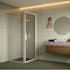 Duschhörn HietakariBläk 755 New York Fast Vägg och Vändbar Dörr719 Fast Vägg (L1) x 717 Vändbar Dörr (L2) mm, Reeded, Vita Profiler