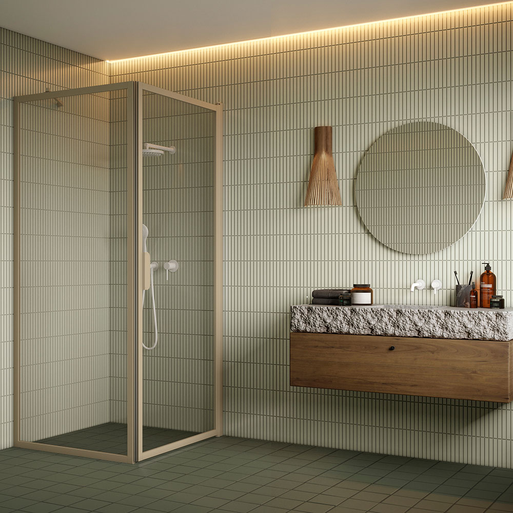 Duschhörn HietakariBläk 755 New York Fast Vägg och Vändbar Dörr919 Fast Vägg (L1) x 717 Vändbar Dörr (L2) mm, Satin, Sand Profiler
