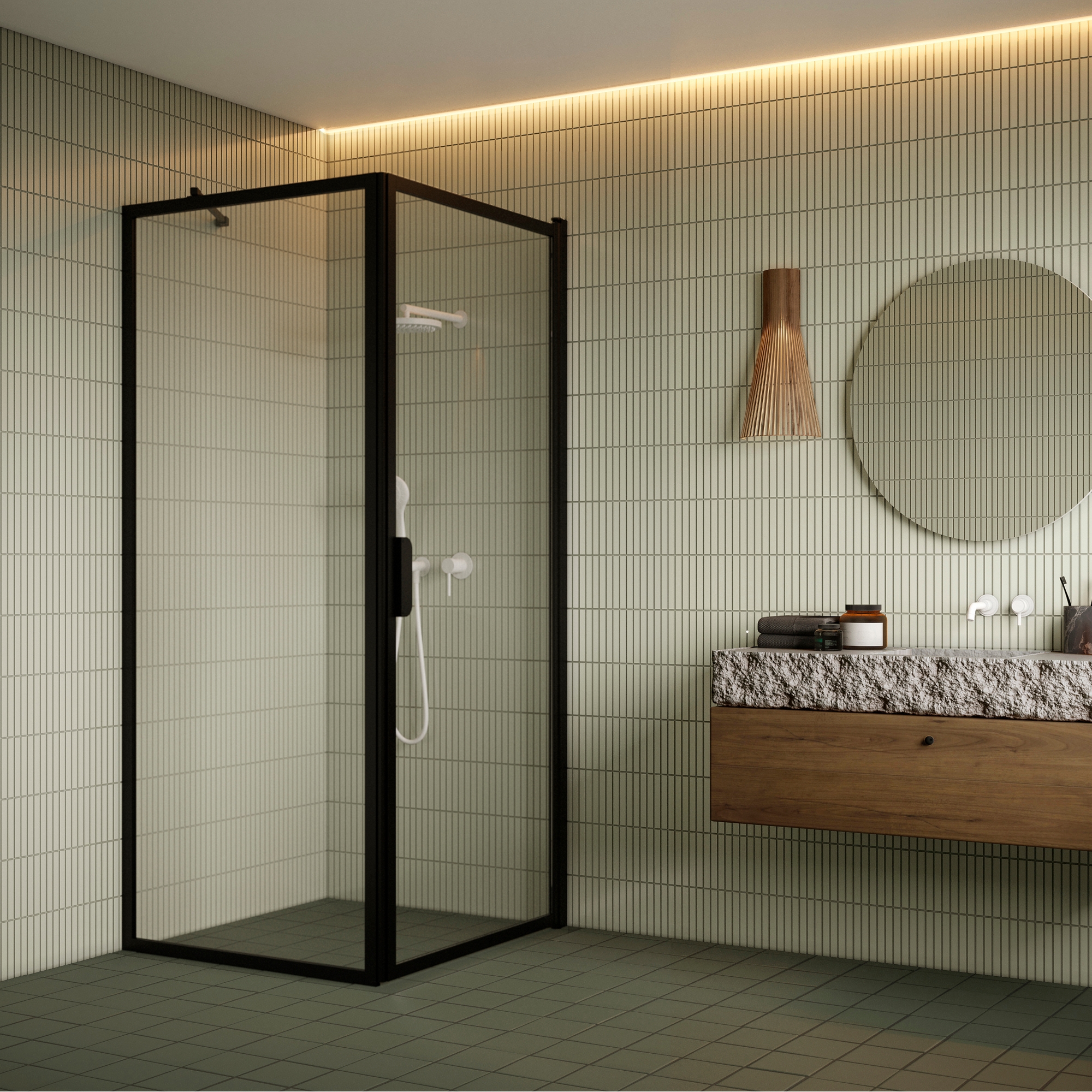 Duschhörn Hietakari Bläk 755 New York består av en fast vägg och en vändbar duschdörr i industriell stil. Den fasta väggen förses med en golvlist som har 7 mm höjdtolerans, golvlisten monteras i golvet under duschpanelen. Ifall högre lutning finns bör produkten beställas med justeringsfot, då sockeltätning tillkommer. Även sockeltätningen skyddar effektivt mot vattenstänk. Duschväggen hålls stabil tack vare det sneda sidostaget. Istället för det sneda sidostaget, kan man välja duschväggen med ett långt sidostag, som installeras i 90 graders vinkel, finns att välja som tillval. Den vändbara duschdörren skyddar effektivt mot vattenstänk då den monteras med en tillkommande släptätningslist. Duschdörren förses med justerbar centrering och är försedd med lyftgångjärn.