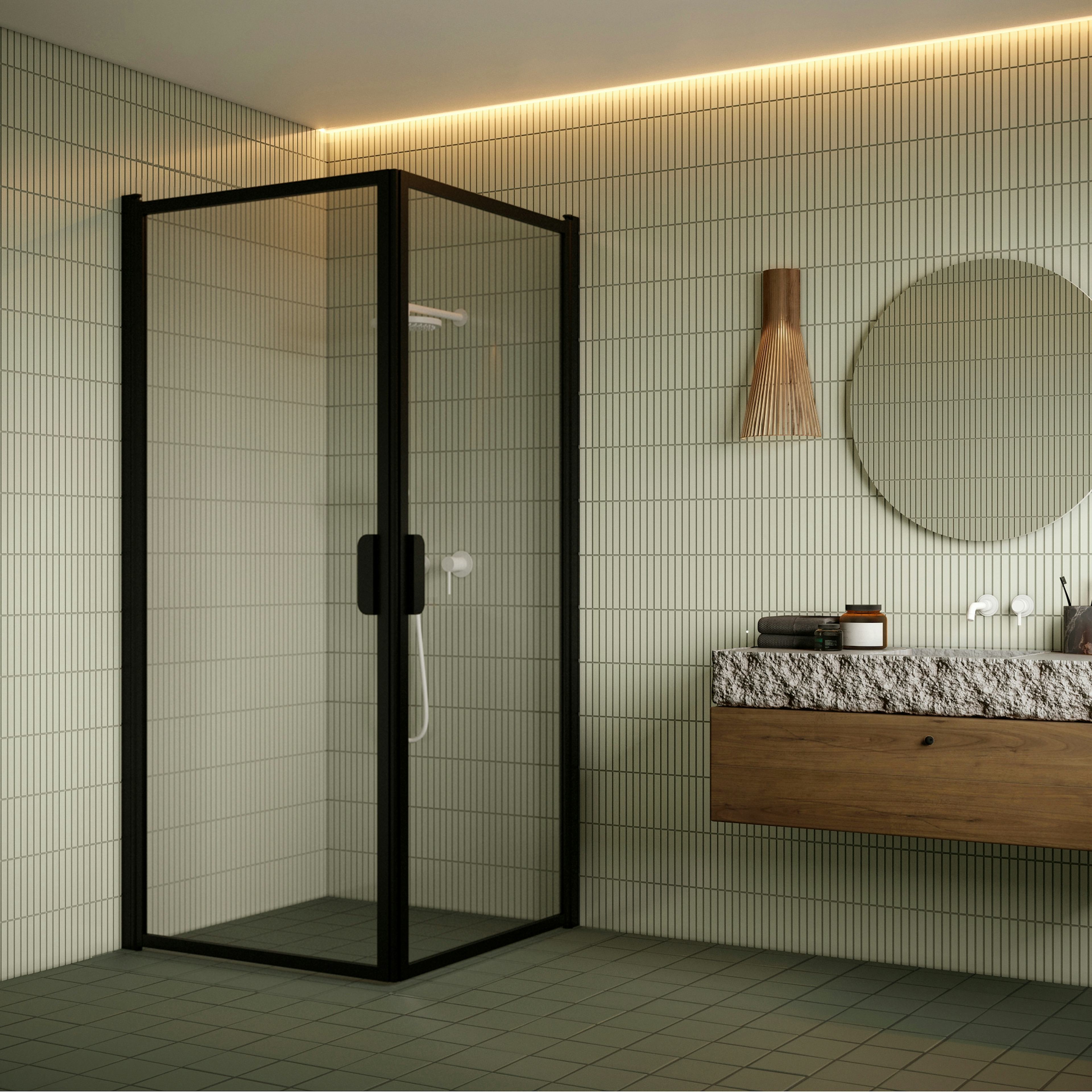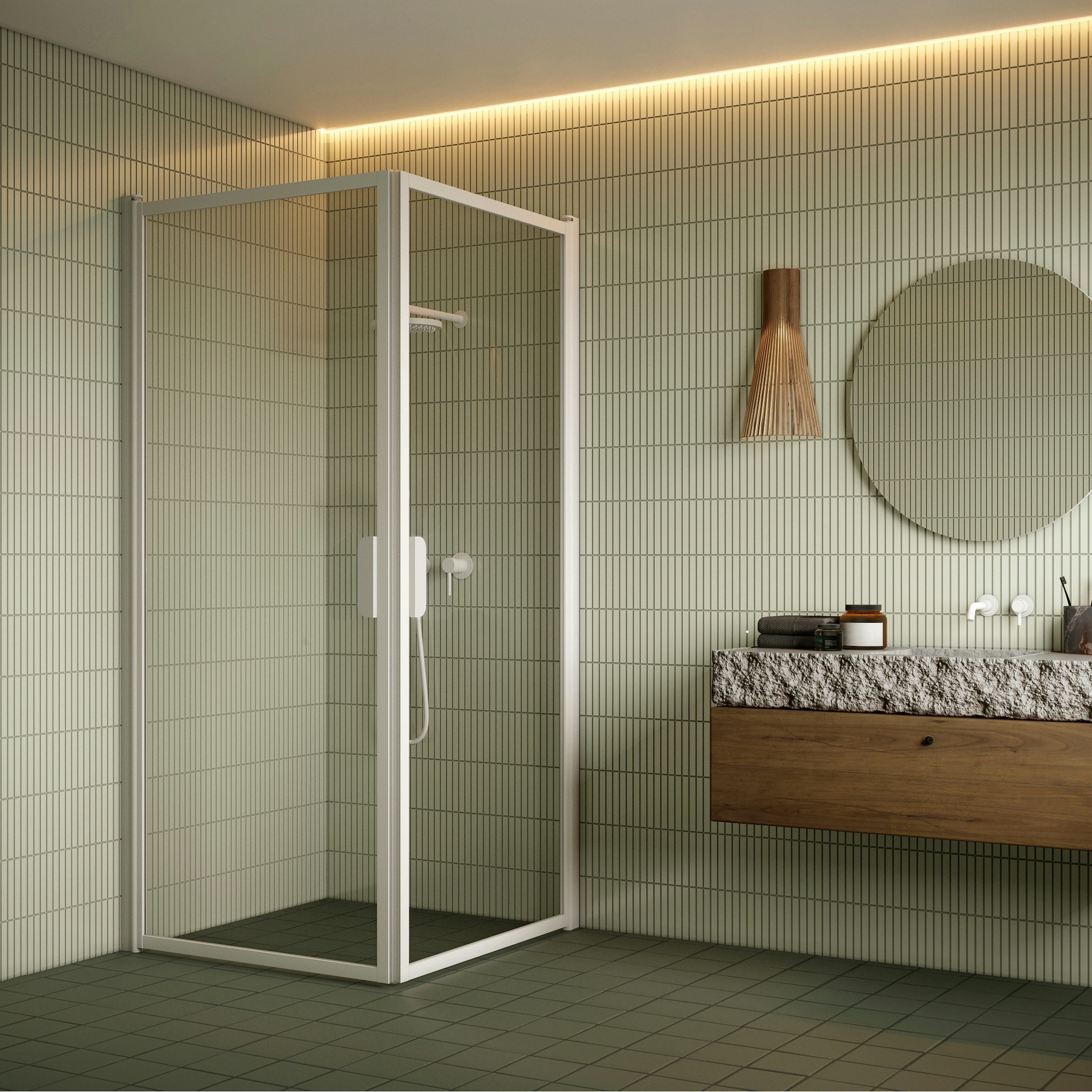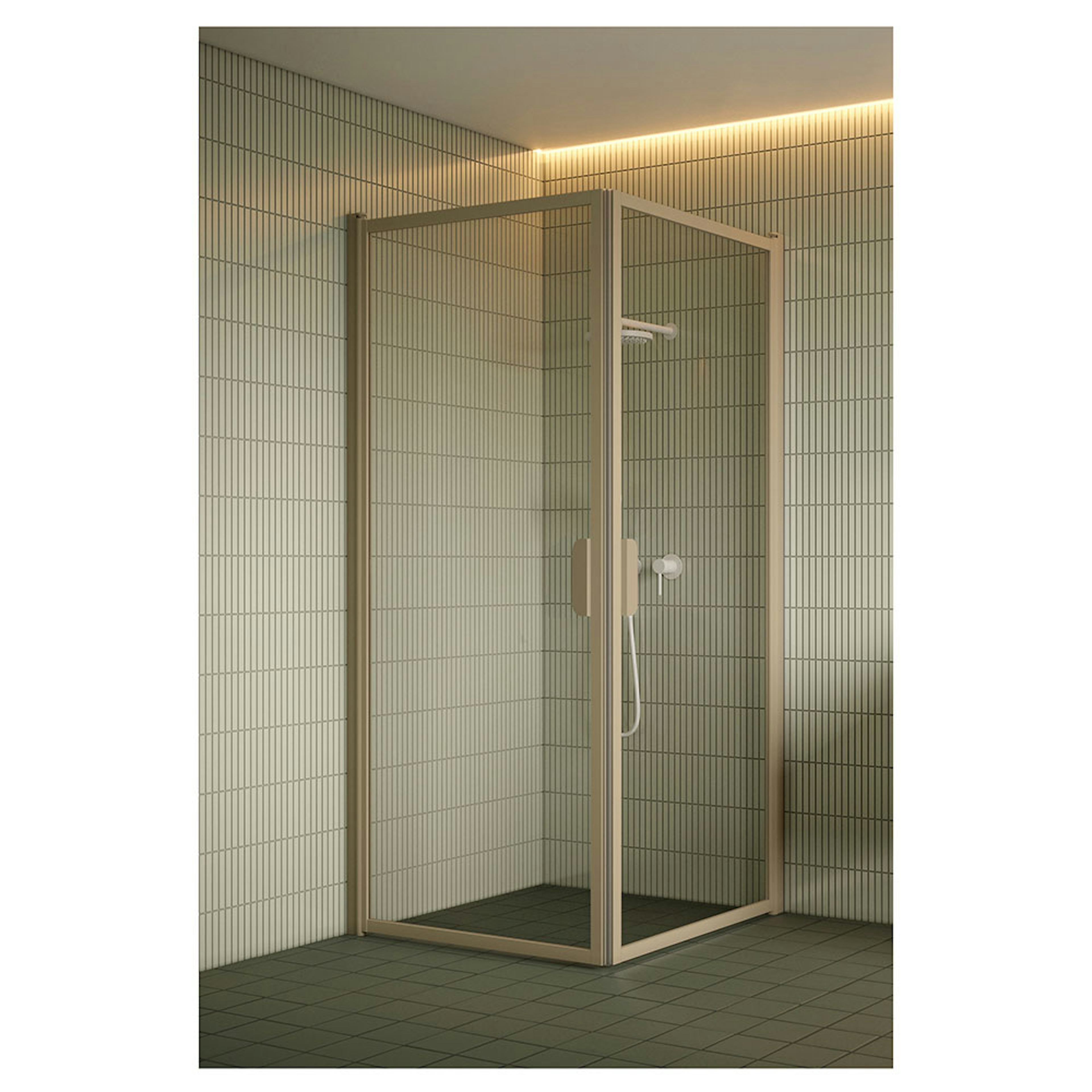 Dörrpanelerna är monterade på byggnadens vägg med väggfästen på vardera sidan av duschhörnan. Släptätning och tröskelprofiler kan installeras under dörrpanelerna för att förbättra vattentätningen. Magnettätning installeras på varje dörröppning för att hålla dörren tätt stängd.