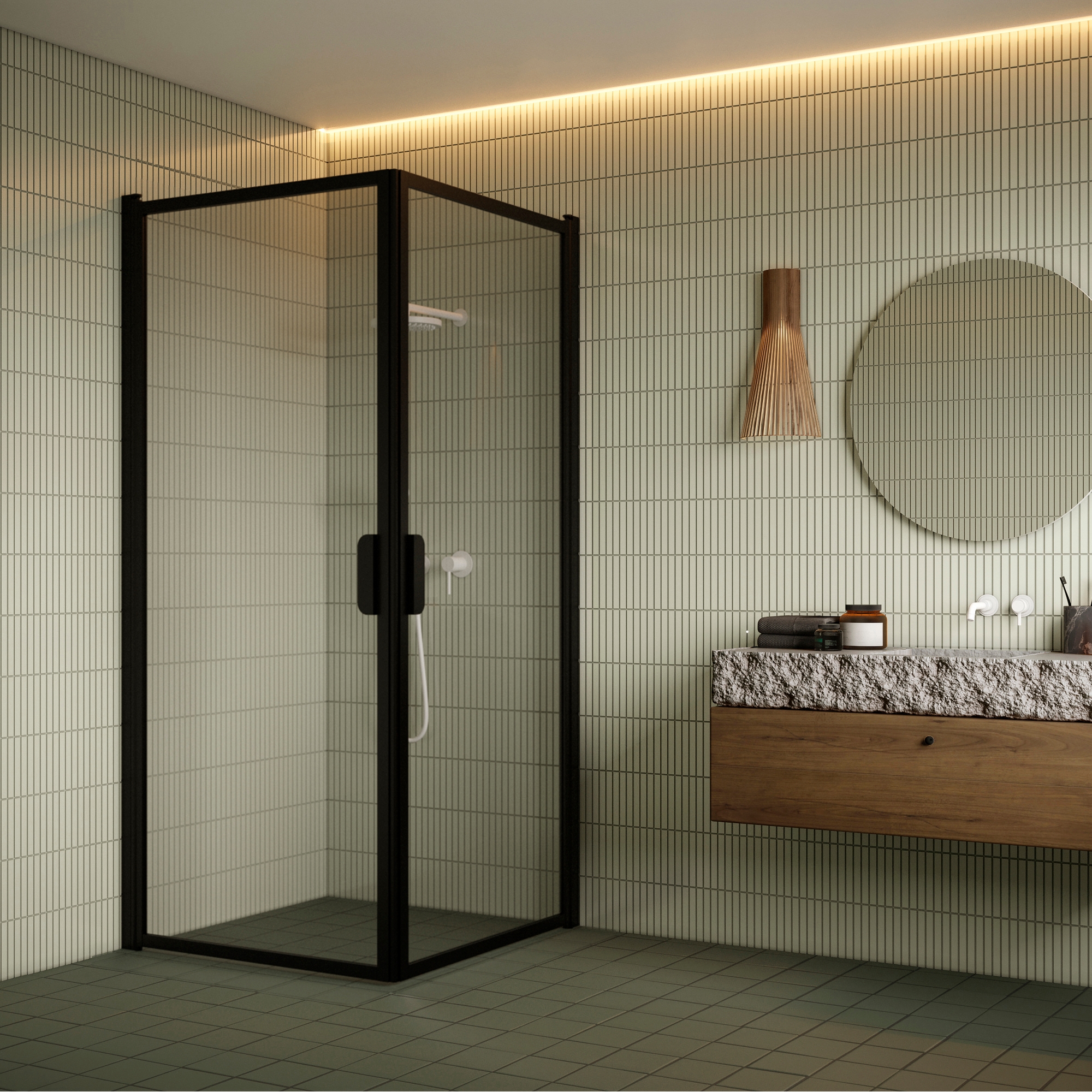 Duschhörn HietakariBläk 757 New York Vändbara Dörrar917 (A) x 917 (B) mm, Klarglas, Vita Profiler