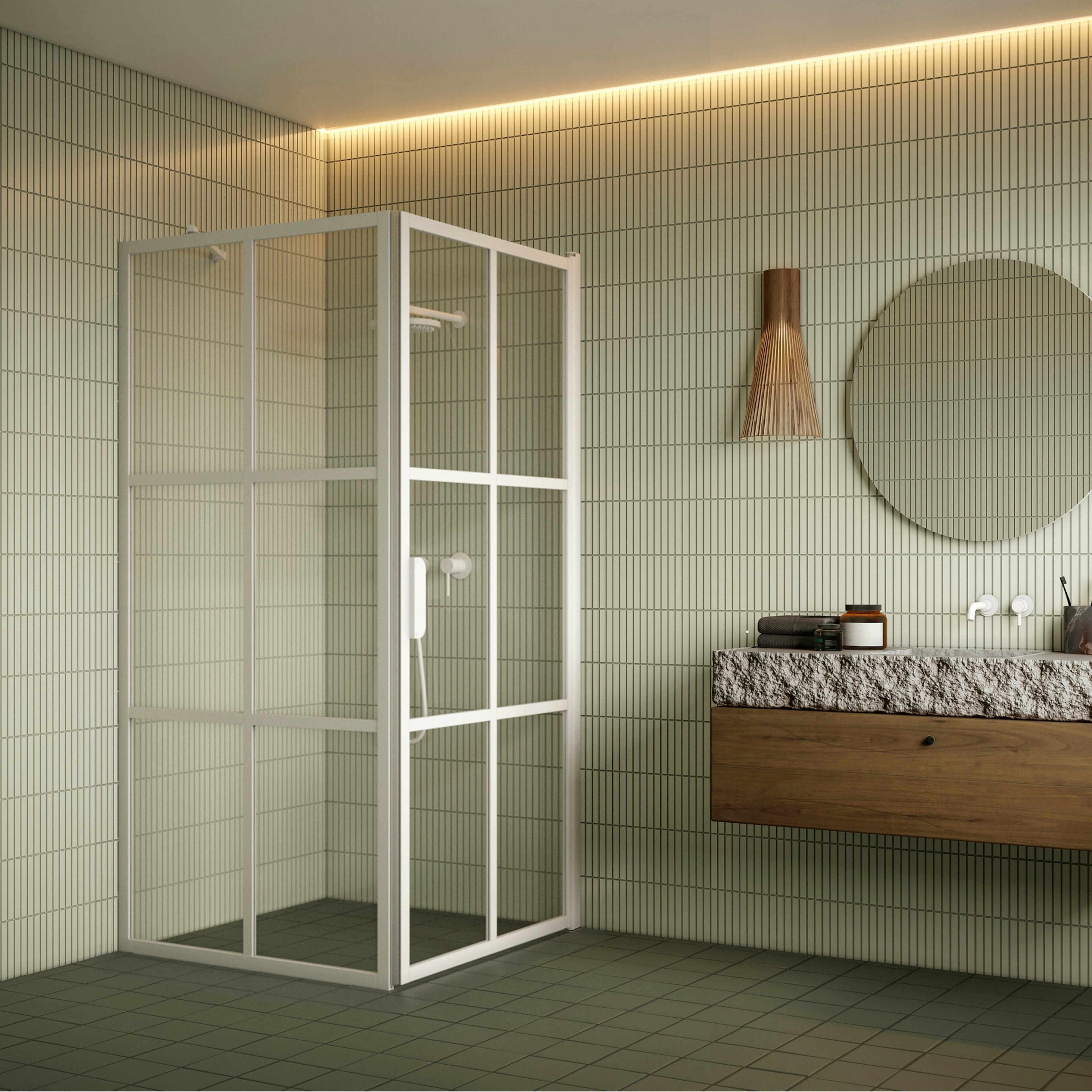 Duschhörn Hietakari Bläk 765 Paris Fast Vägg och Vändbar Dörr819 Fast Vägg (L1) x 817 Vändbar Dörr (L2) mm, Satin, Vita Profiler