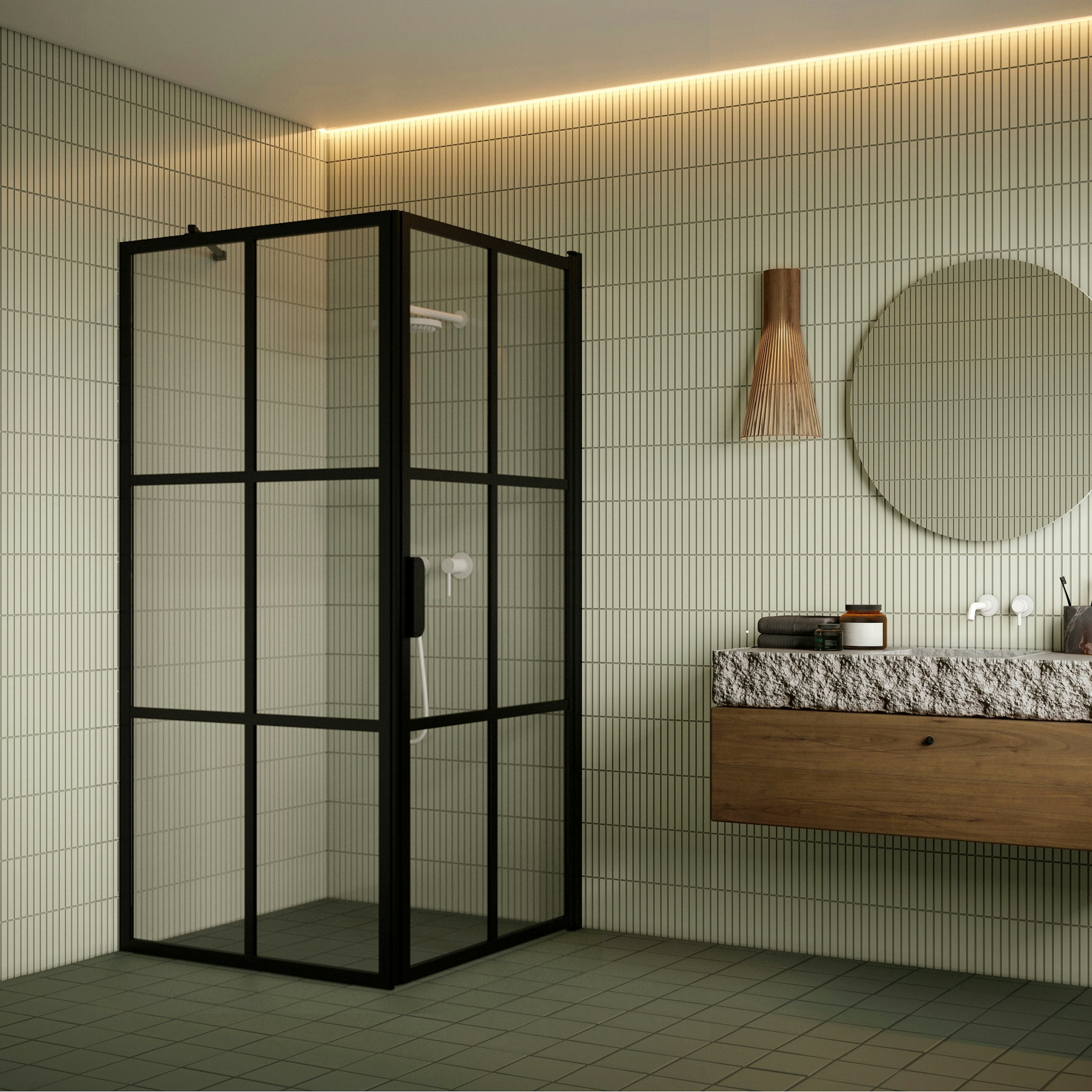 Duschhörn Hietakari Bläk 765 Paris består av en fast vägg och en vändbar duschdörr i industriell stil. Den fasta väggen förses med en golvlist som har 7 mm höjdtolerans, golvlisten monteras i golvet under duschpanelen. Ifall högre lutning finns bör produkten beställas med justeringsfot, då sockeltätning tillkommer. Även sockeltätningen skyddar effektivt mot vattenstänk. Duschväggen hålls stabil tack vare det sneda sidostaget. Istället för det sneda sidostaget, kan man välja duschväggen med ett långt sidostag, som installeras i 90 graders vinkel, finns att välja som tillval. Den vändbara duschdörren skyddar effektivt mot vattenstänk då den monteras med en tillkommande släptätningslist. Duschdörren förses med justerbar centrering och är försedd med lyftgångjärn.
