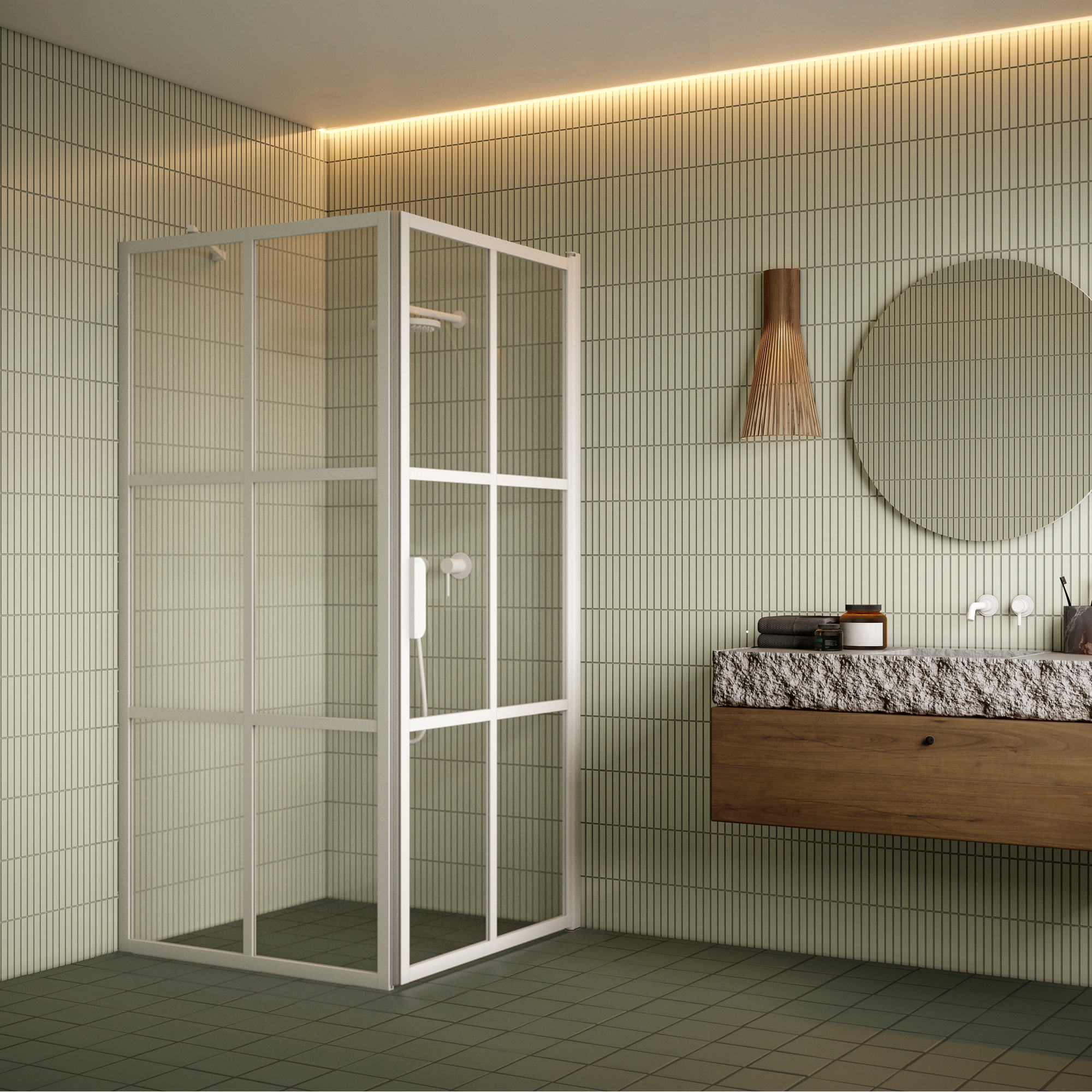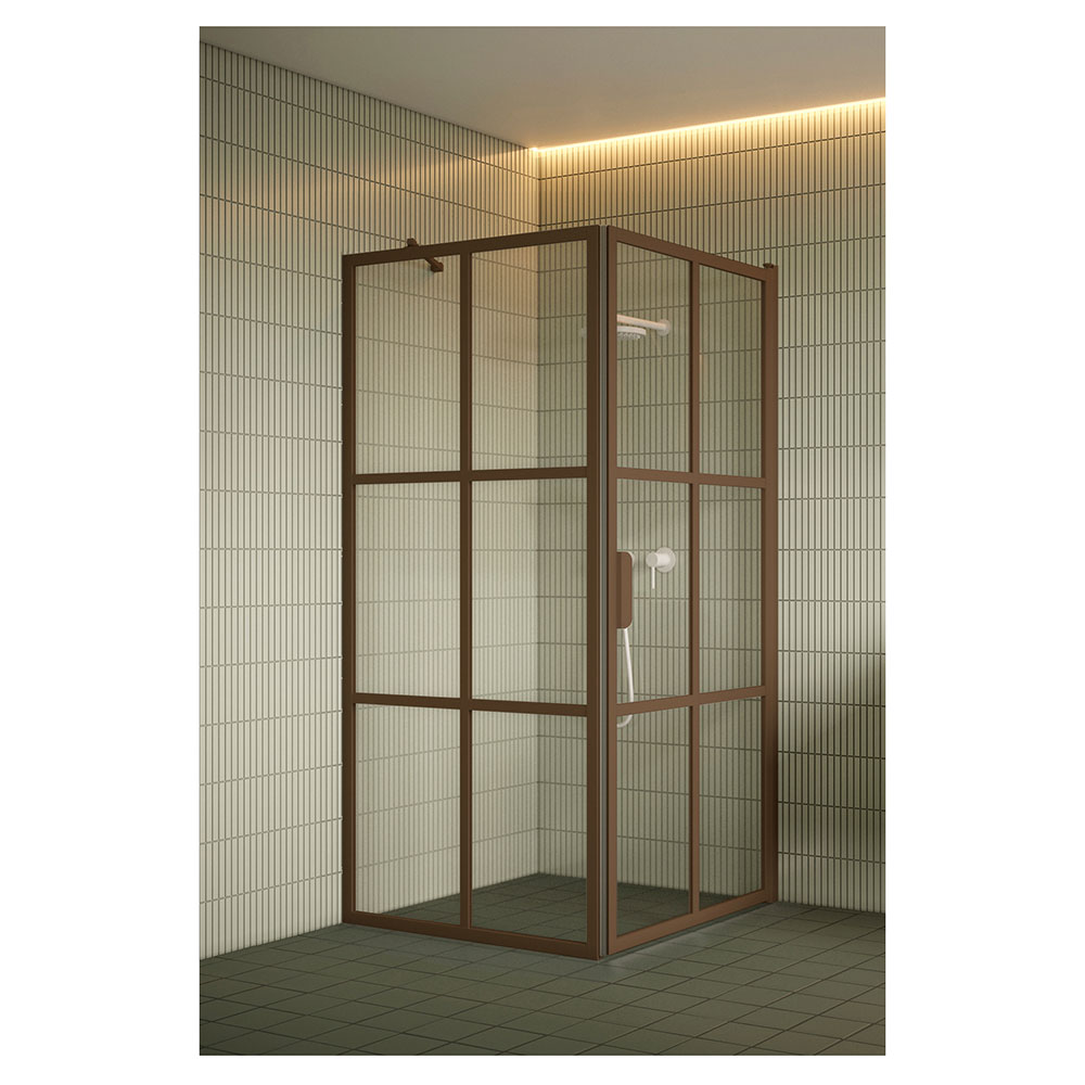 Duschhörn HietakariBläk 765 Paris Fast Vägg och Vändbar Dörr919 Fast Vägg (L1) x 917 Vändbar Dörr (L2) mm, Satin, Mocha Profiler