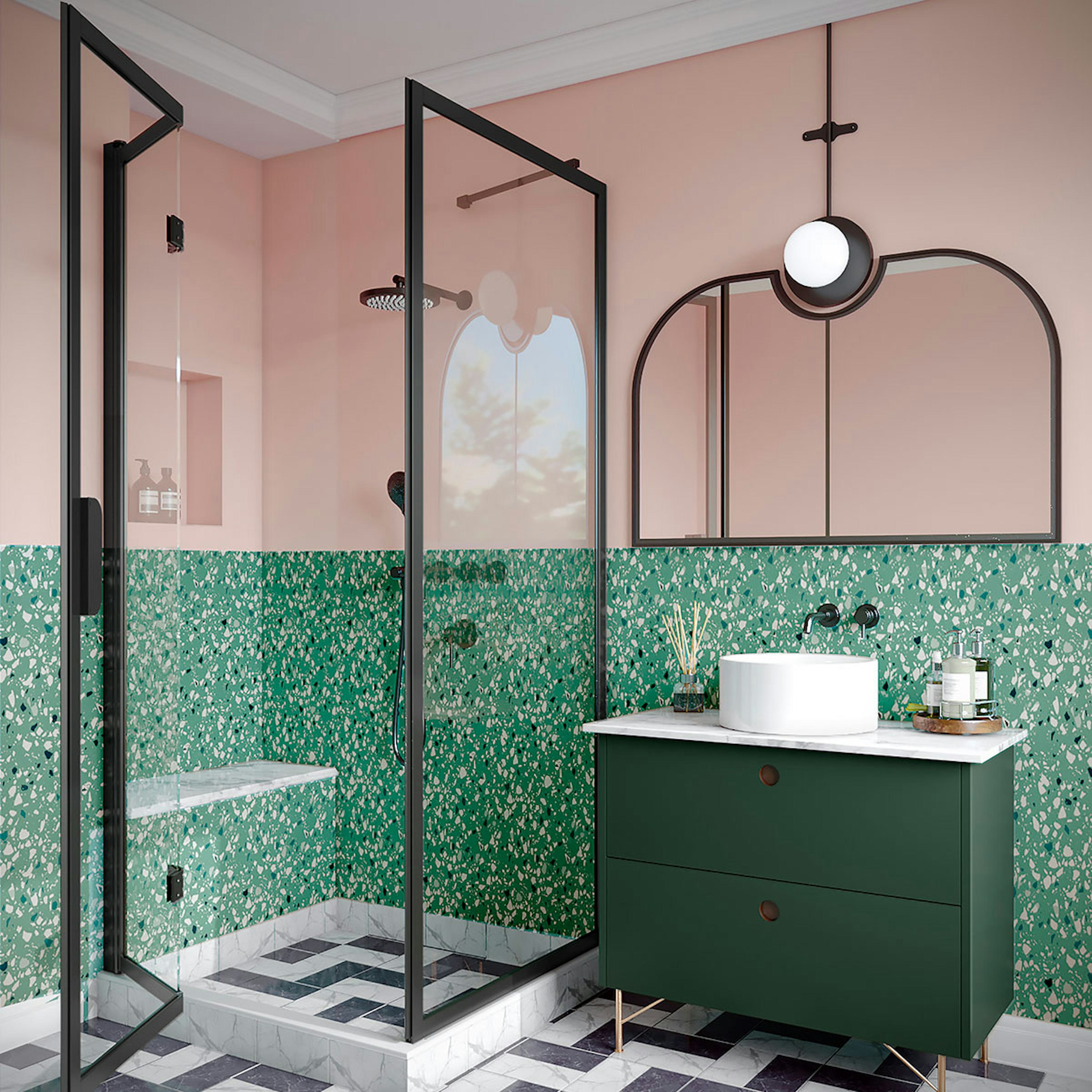 Duschhörn Hietakari Bläk 887 New York består av en fast vägg och en vikbar dörr, vilket gör den idealisk för hörnplacering där utrymmet är begränsat. Den är särskilt praktisk i hörn där det finns en möbel på ena sidan och där det andra sidan också är trång, vilket kan göra det svårt att öppna en vanlig dörr utåt. Den vikbara dörren kräver inget extra utrymme utanför duschutrymmet eftersom den viker sig inåt och glaset samlas kompakt mot väggen. Detta ger en smidig lösning, där den fasta väggen kan skydda möbeln och dörren kan anpassas för att passa det tillgängliga utrymmet.