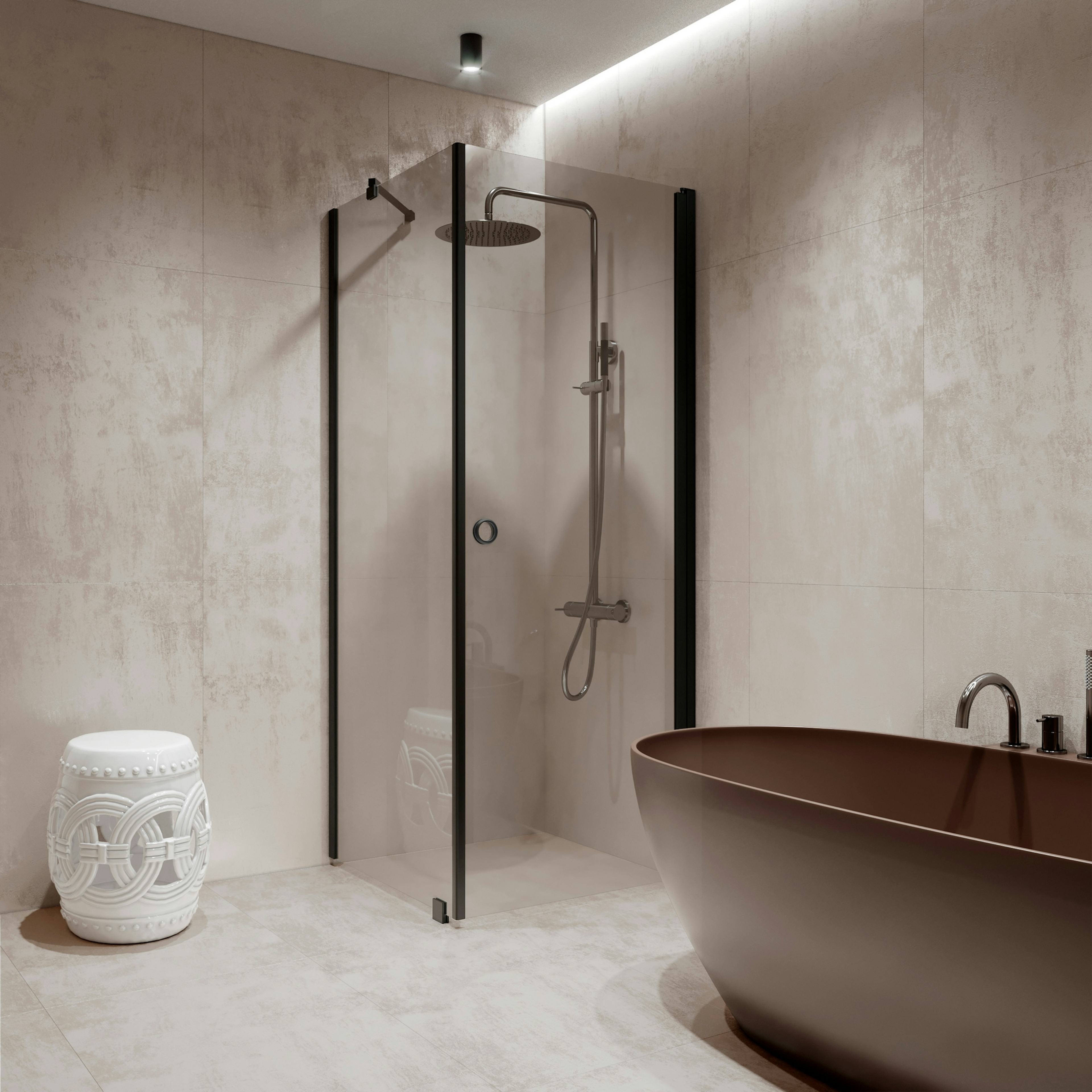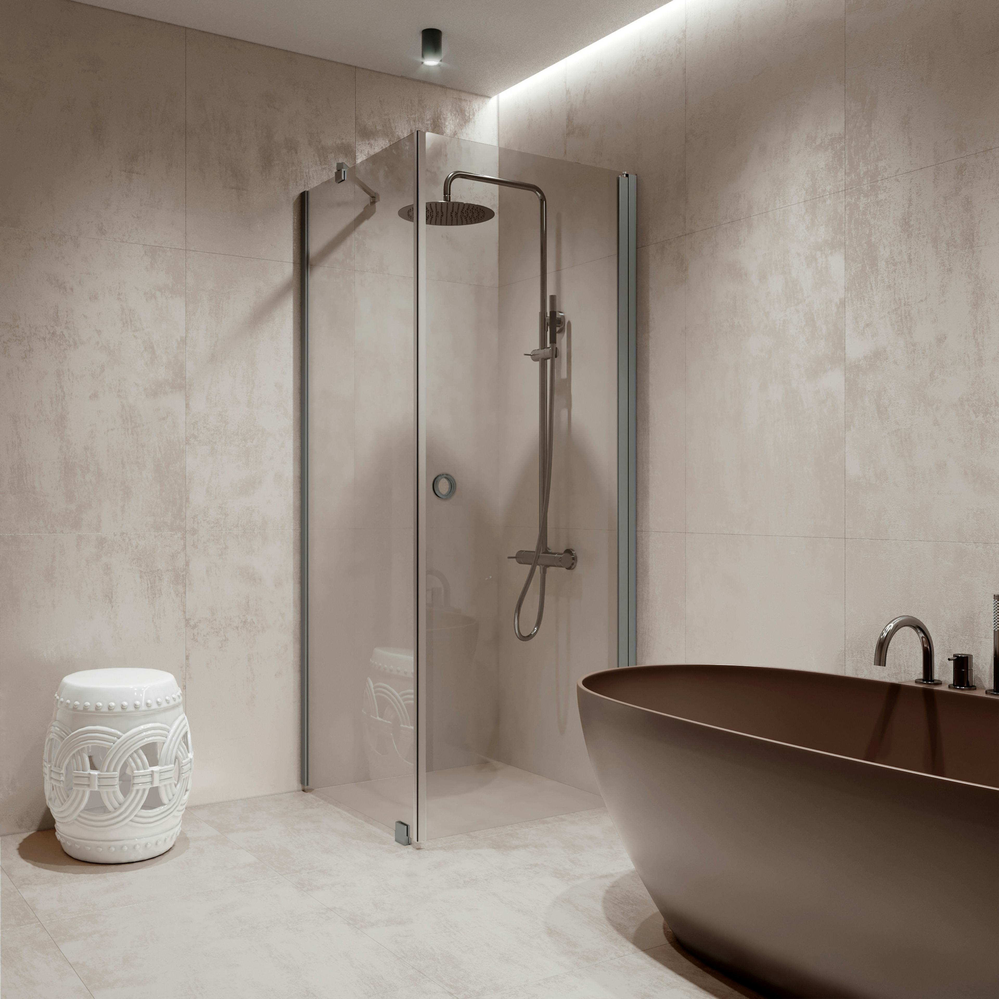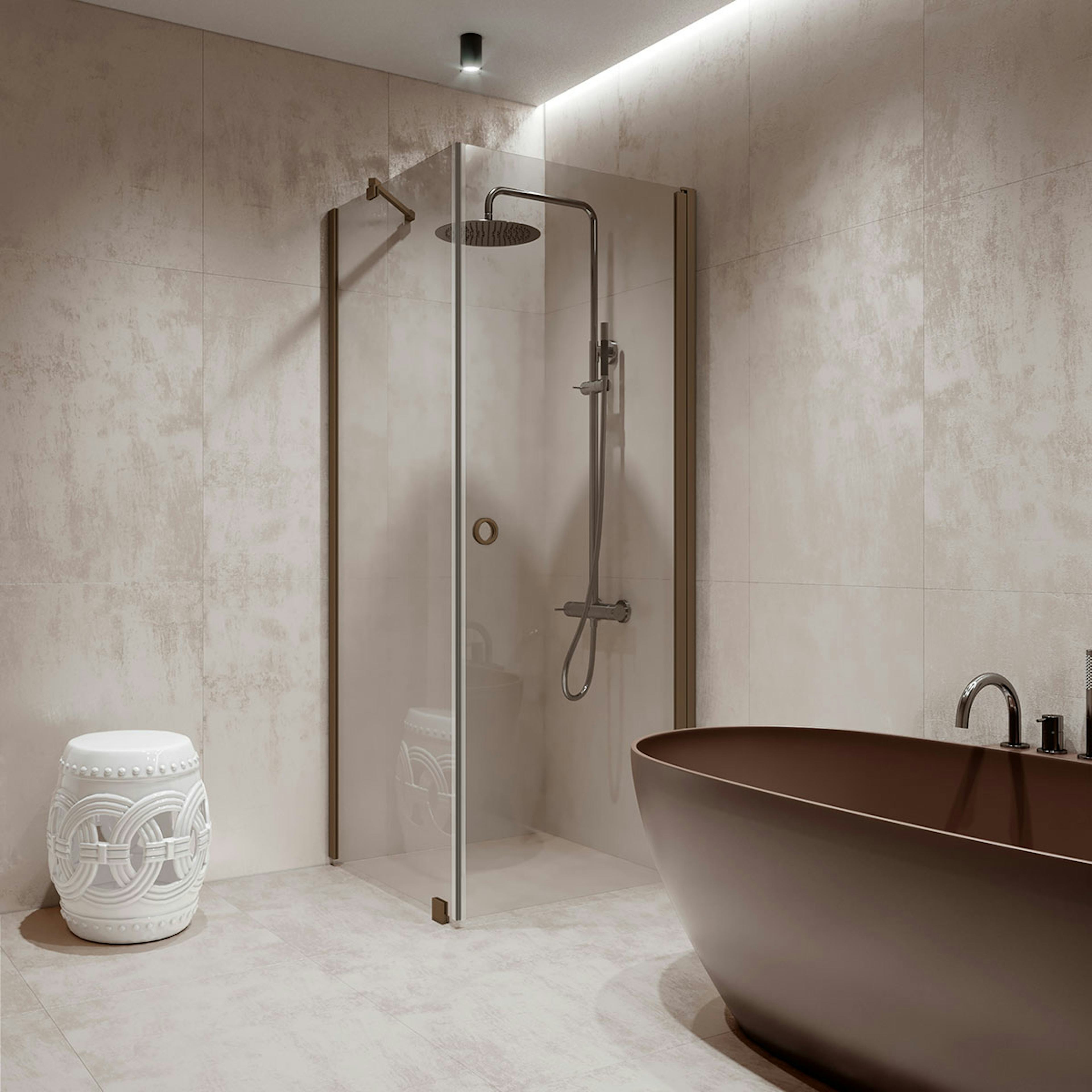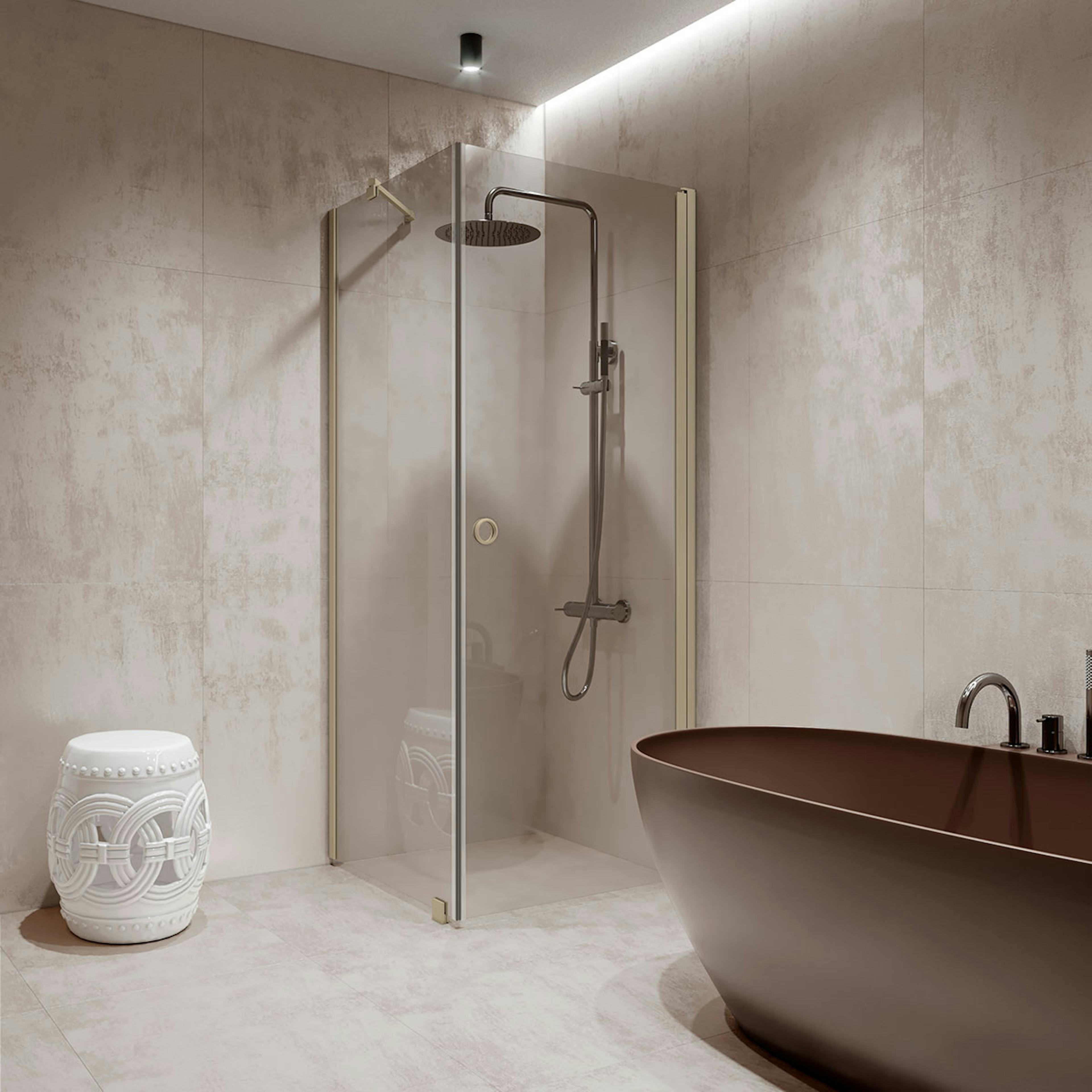 Duschhörn Hietakari Forma 368 Fast Vägg och Vändbar Dörr902 Fast Vägg (A) x 907 Vändbar Dörr (B) mm, Satin, Sand Profiler