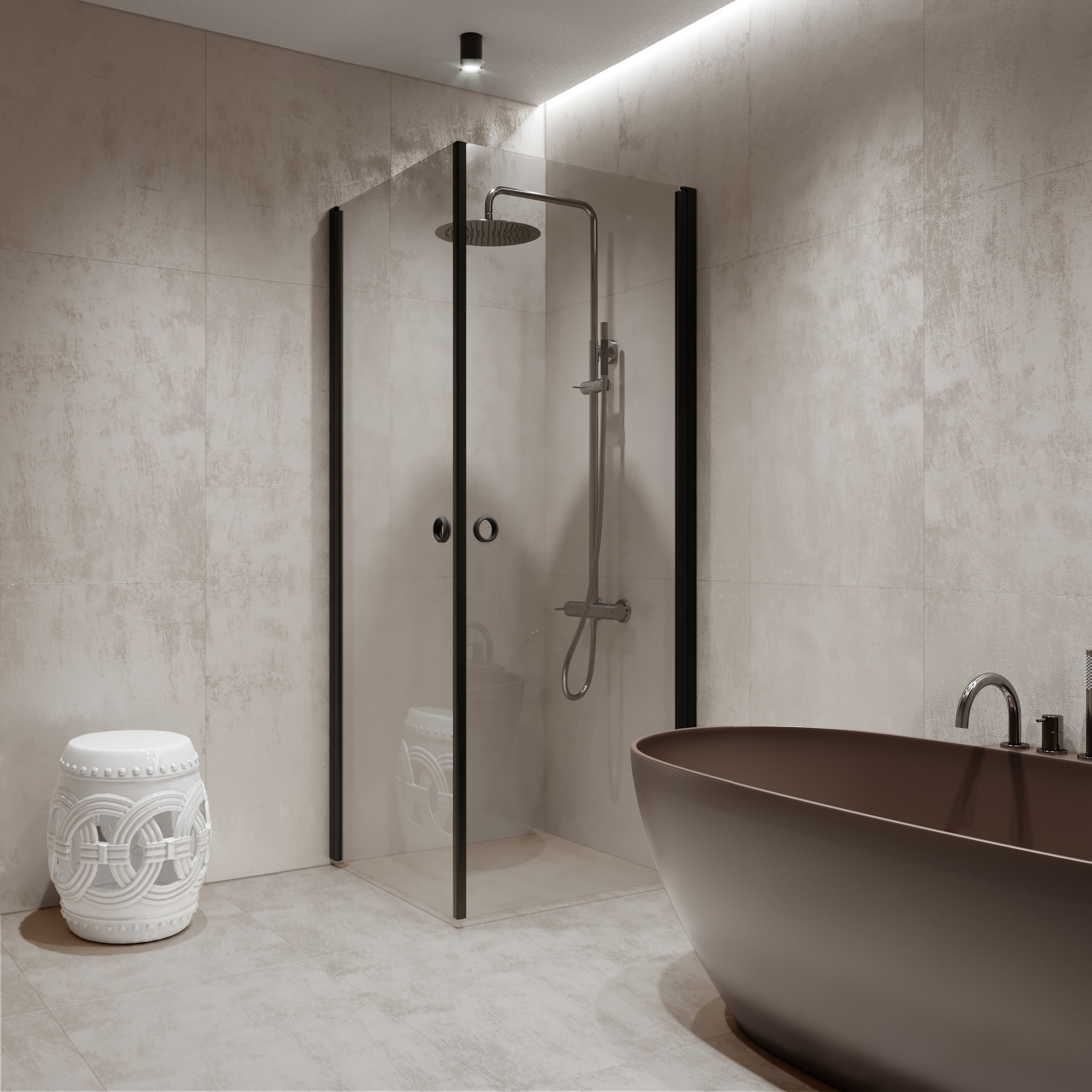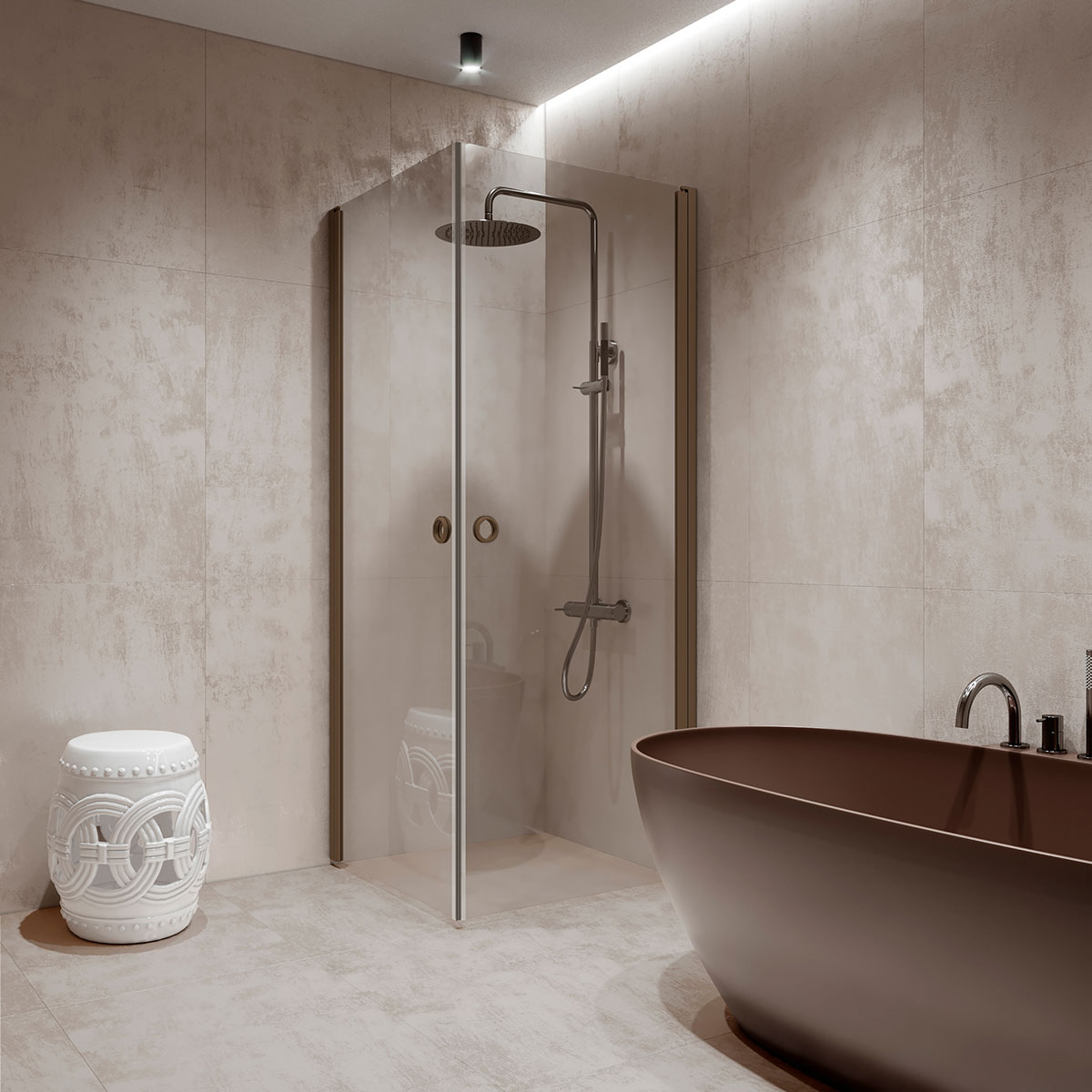 Duschhörn HietakariForma 372 Vändbara Dörrar707 (A) x 807 (B) mm, Satin, Sand Profiler