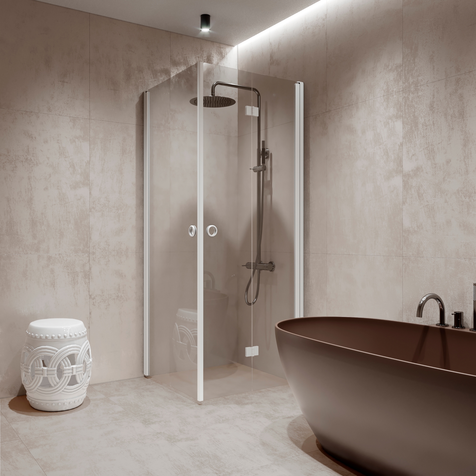 Duschhörn Hietakari Forma 373 består av en vändbar och en vikbar duschdörr med stilren design. Den vändbara och den vikbara duschdörren skyddar effektivt mot vattenstänk då den monteras med den 28 mm höga släptätningslisten som medföljer som standard. Det finns en 50 mm hög släptätning att beställa som tillval när golvlutningen är större än normalt.