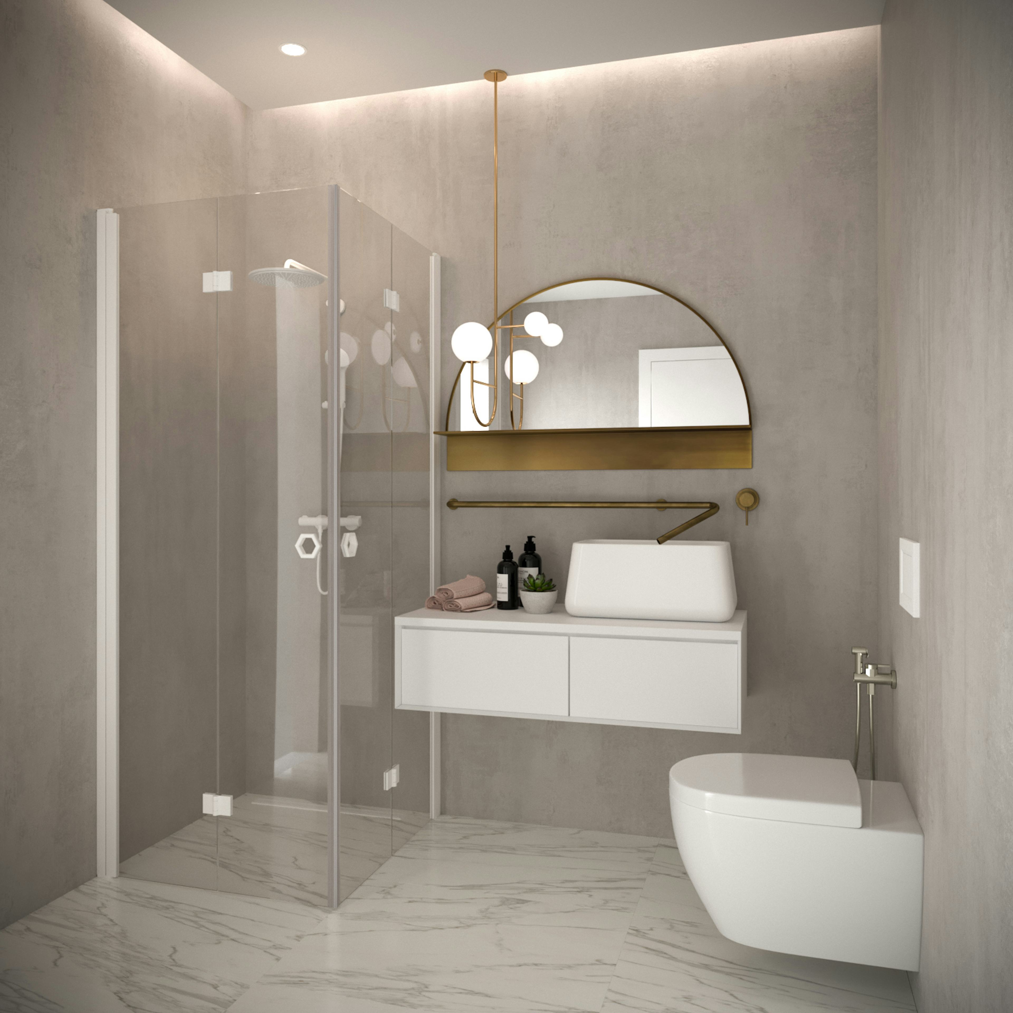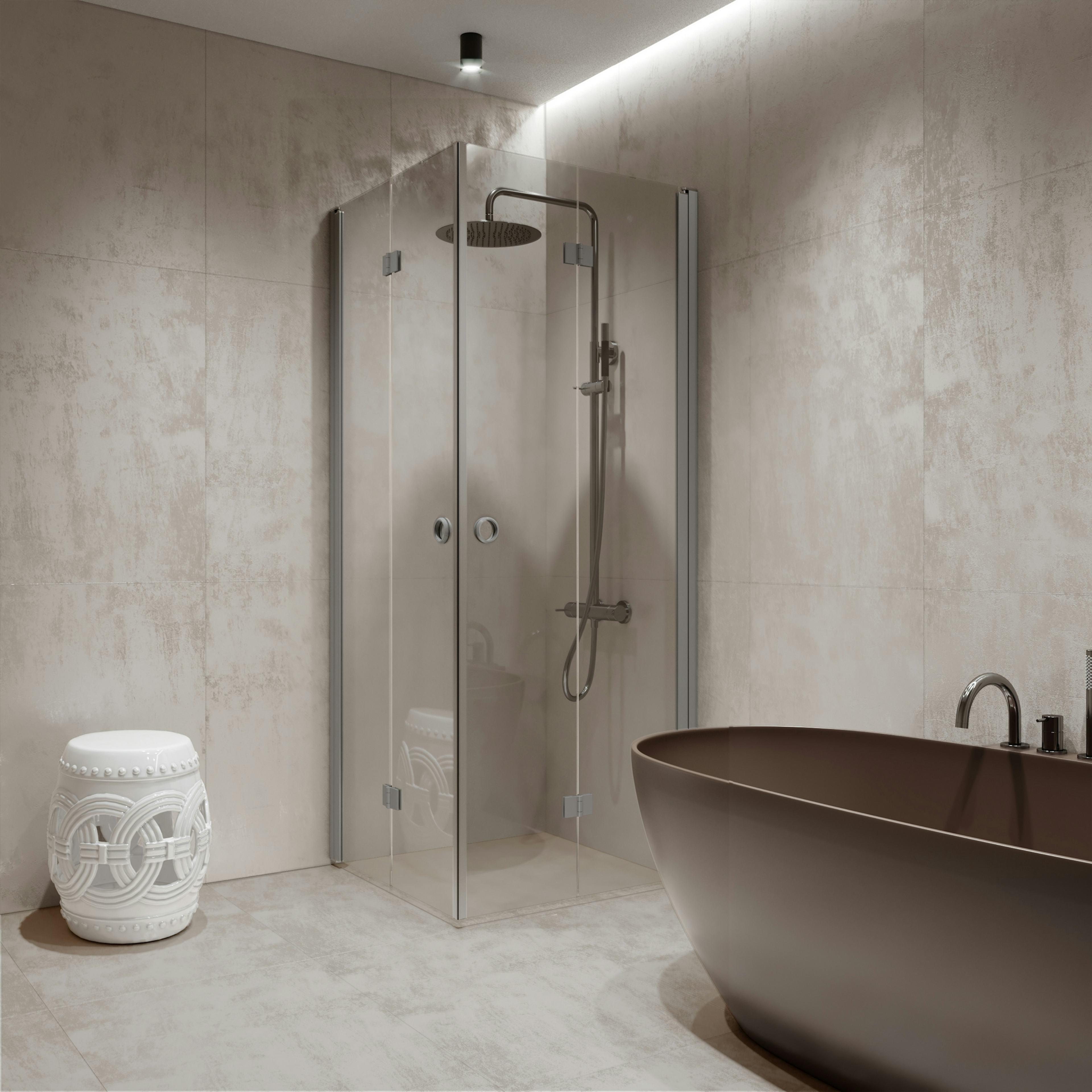 När duschen inte används kan duschdörrarna vändas och vikas ihop mot väggen. Duschdörren vänds 90 grader i bägge riktningarna och förses med justerbar centrering. Centreringen strävar efter att återställa duschdörren till öppen respektive stängd position. Dörren är försedd med lyftgångjärn.