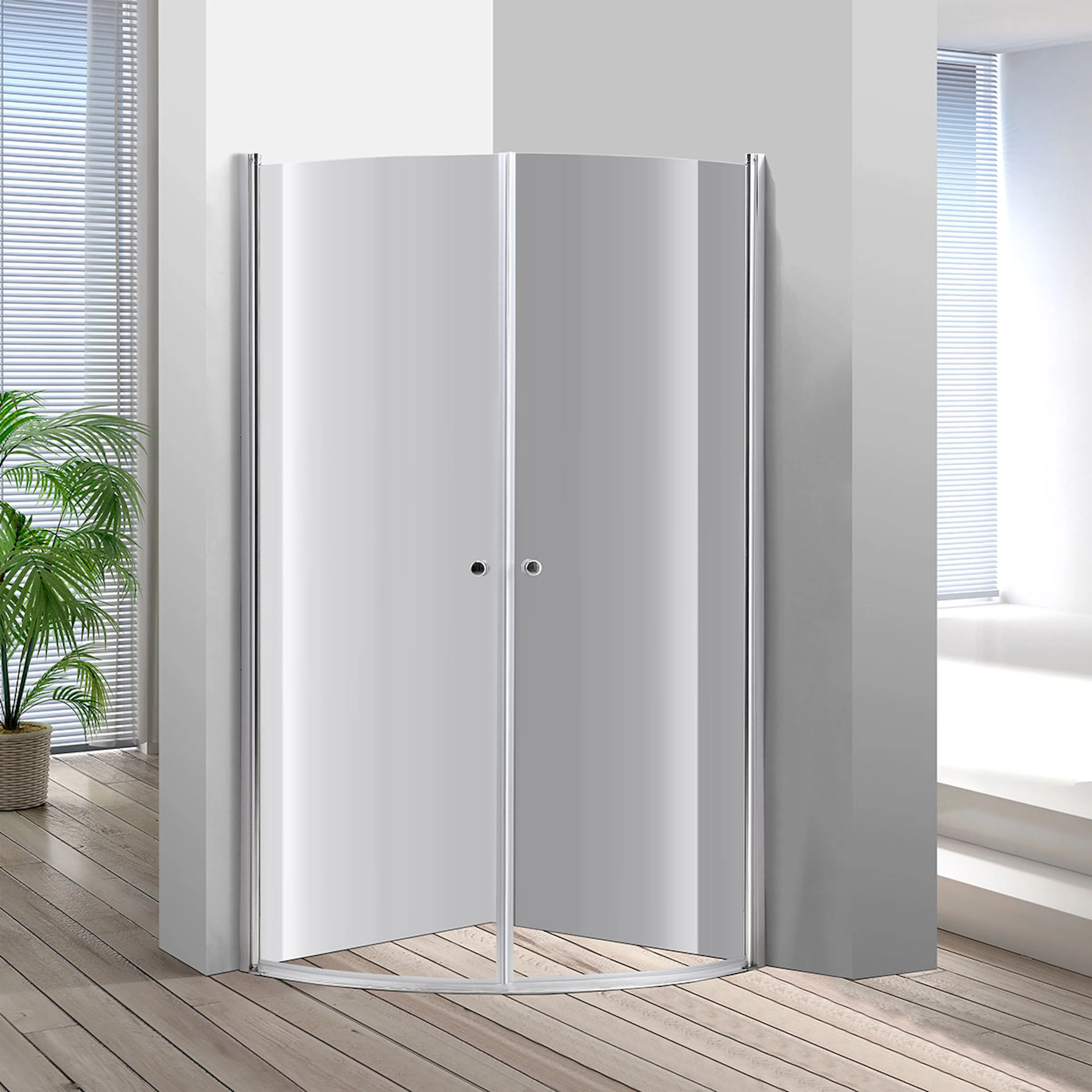 Duschhörnan Anholt är tillverkad av 5 millimeter härdat säkerhetsglas, kromade aluminiumprofiler och knoppar i ABS. Den är utrustad med magnetlister som håller dörrarna stängda under användning. När du inte använder duschen går dörrarna att svänga inåt så att de tar mindre plats! Profilerna är justerbara upp till 15 millimeter för att underlätta installationen. Släplisterna nertill hindrar vatten från att åka under dörrarna när du duschar.