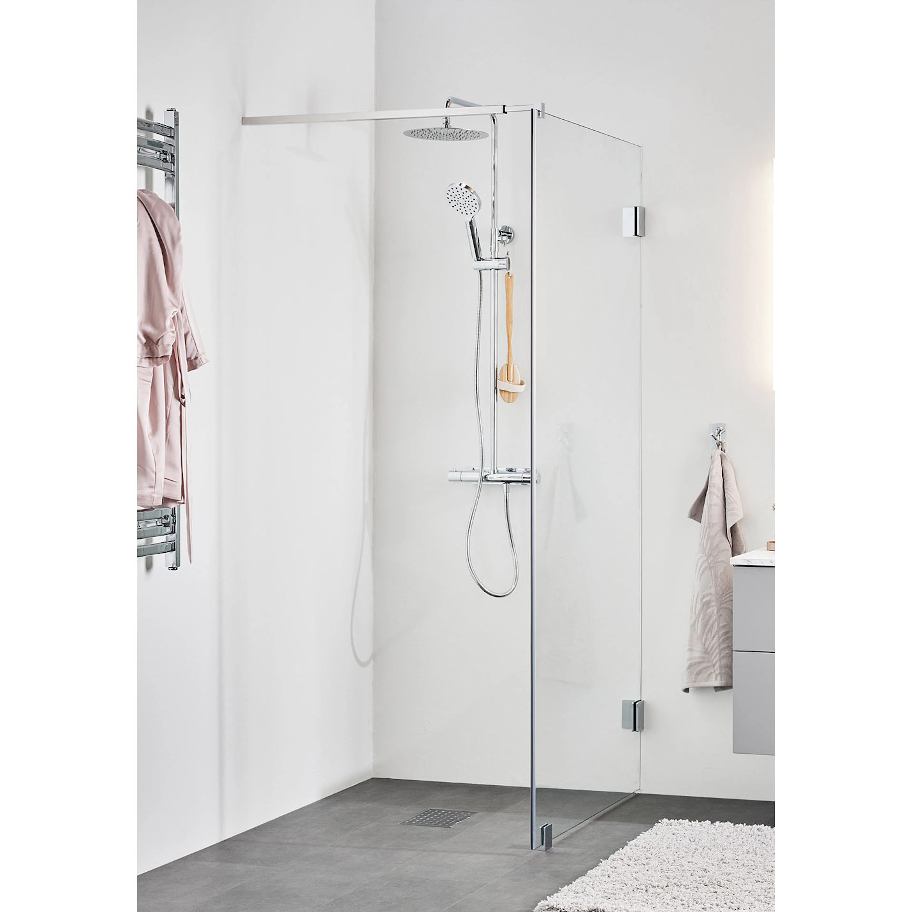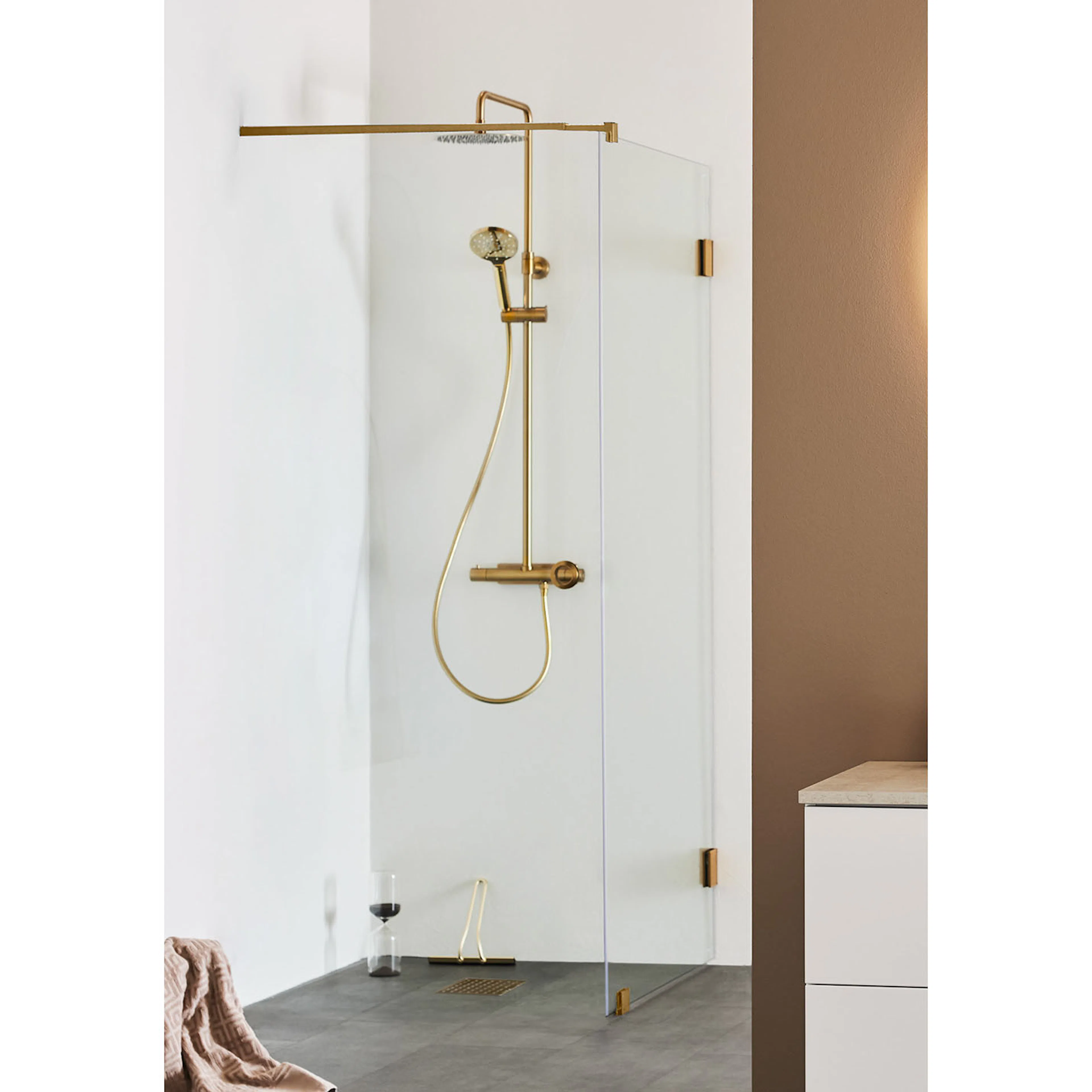 Duschvägg Hafa Infinity är en exklusiv duschvägg med smäckra beslag och en elegant draperistång. Välj mellan tre färger, krom, mattsvart eller borstad mässing. De stora glasytorna ger ett luftigt intryck och skapar en härlig rymd i badrummet. Väggen är vändbar så du kan välja vilken vägg den skall installeras på.