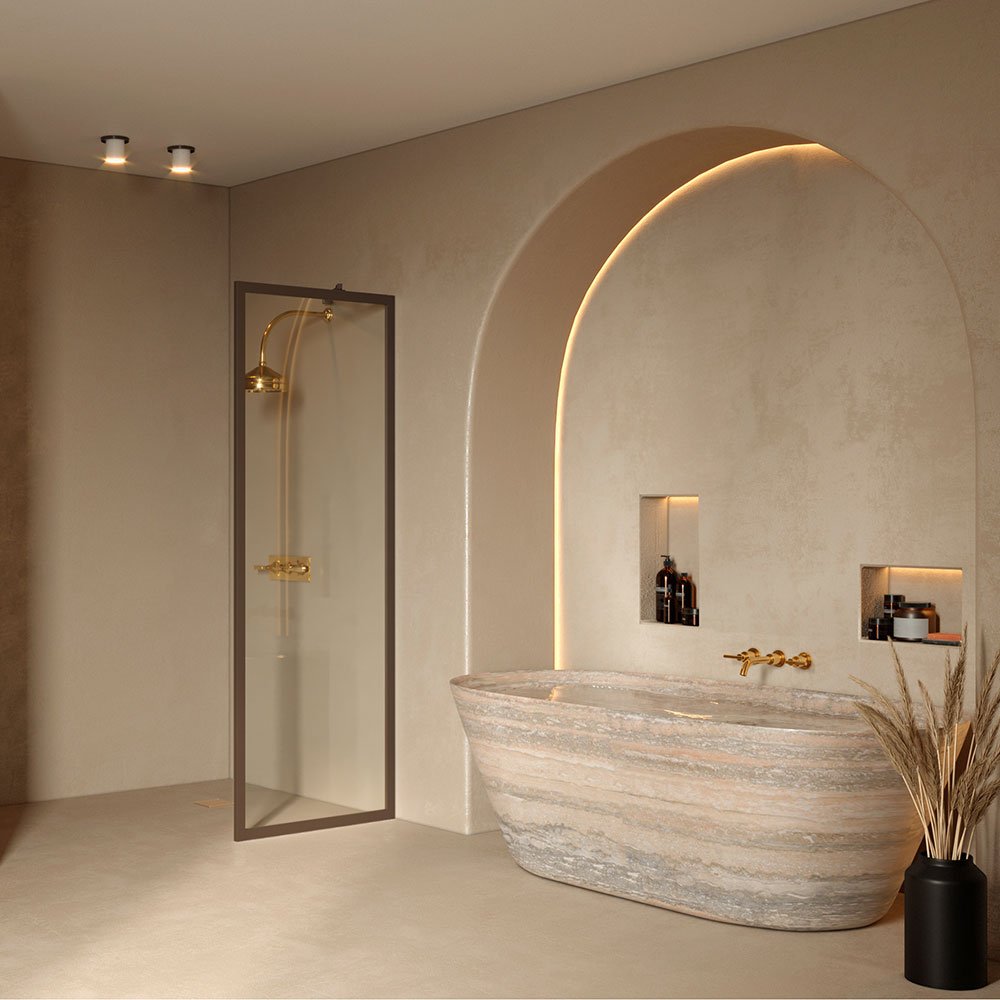 Duschvägg Hietakari Bläk 731 New York är en fast duschvägg i industriell stil. Den fasta väggen skyddar effektivt mot vattenstänk. Produkten förses med en golvlist som har 7 mm höjdtolerans, golvlisten monteras i golvet under duschpanelen. Ifall högre lutning finns bör produkten beställas med justeringsfot, då sockeltätning tillkommer. Även sockeltätningen skyddar effektivt mot vattenstänk. Duschväggen hålls stabil tack vare det sneda sidostaget. Istället för det sneda sidostaget, kan man välja duschväggen med ett långt sidostag som installeras i 90 graders vinkel och finns att välja som tillval.