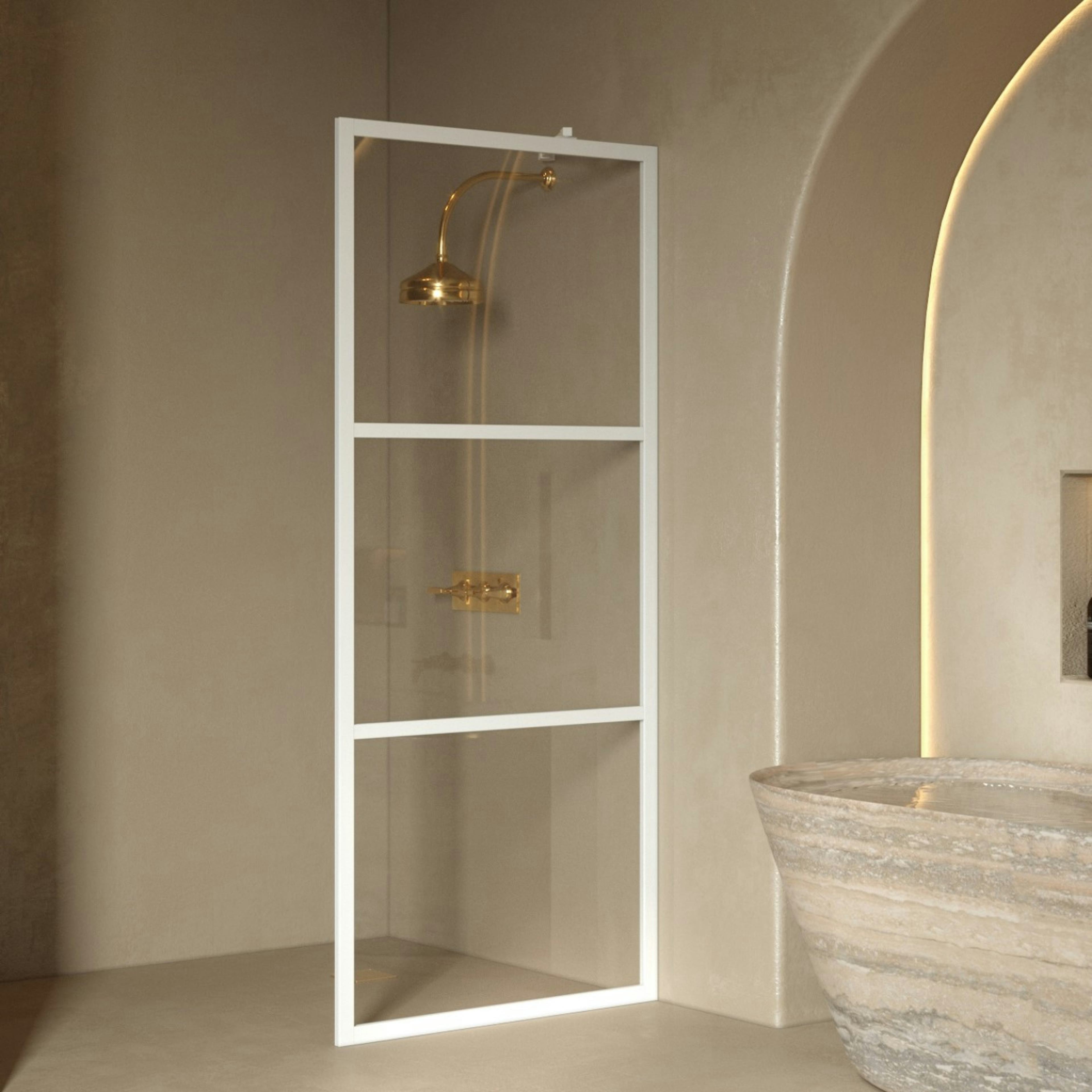 Duschvägg Hietakari Bläk 734 Tokyo Fast897x1950 mm, Klarglas, Vita Profiler