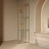 Väggfästena skruvas in i byggnadens vägg. Den fasta duschväggen är fastsatt på väggfästena med självborrande skruvar. Stödstången sätts upp från den övre kanten av den fasta panelen och skruvas in i byggnadens vägg. En sockeltätning kan fästas på duschväggen för att förbättra vattentätningen.