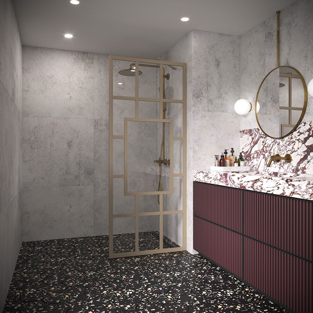 Duschvägg Hietakari Bläk 800 Shanghai är en fast duschvägg i industriell stil. Den fasta väggen skyddar effektivt mot vattenstänk. Produkten förses med en golvlist som har 7 mm höjdtolerans, golvlisten monteras i golvet under duschpanelen. Ifall högre lutning finns bör produkten beställas med justeringsfot, då sockeltätning tillkommer. Även sockeltätningen skyddar effektivt mot vattenstänk. Duschväggen hålls stabil tack vare det sneda sidostaget. Istället för det sneda sidostaget, kan man välja duschväggen med ett långt sidostag, som installeras i 90 graders vinkel, finns att välja som tillval.
