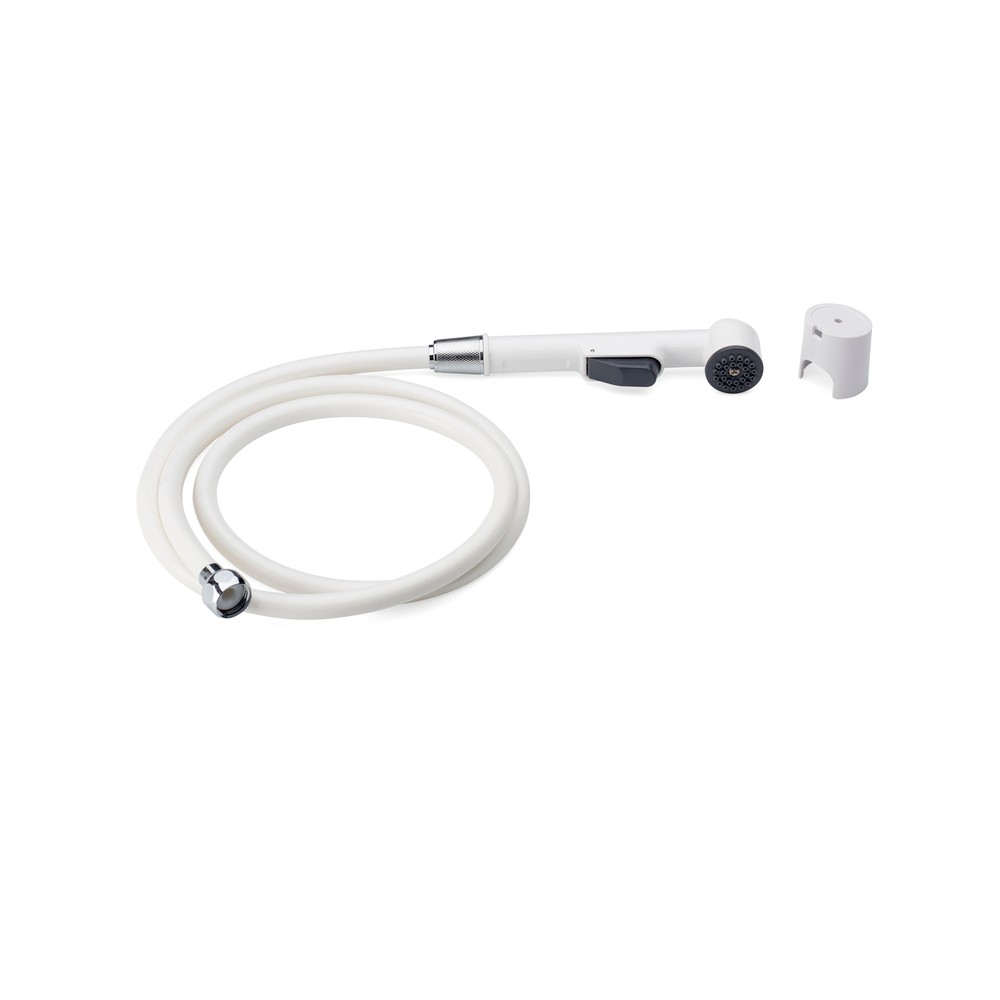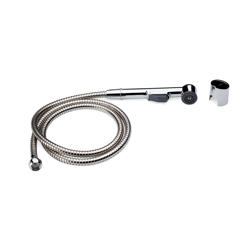 Universaldusch med 1,5 meter duschslang. Handdusch med avstängningsknapp för tvättställ eller bidé. Monteras med medföljande omkastare på befintlig tvättställsblandare.