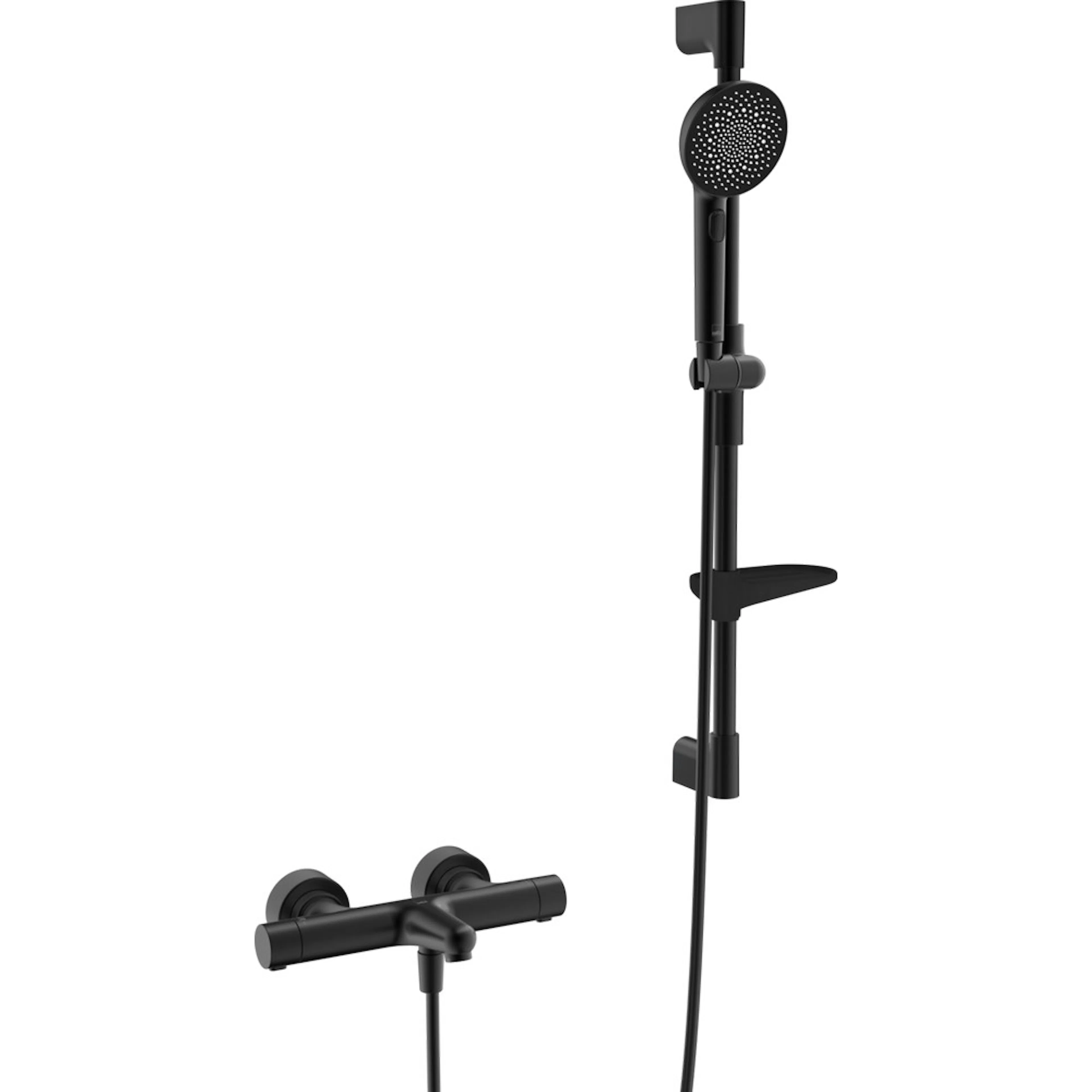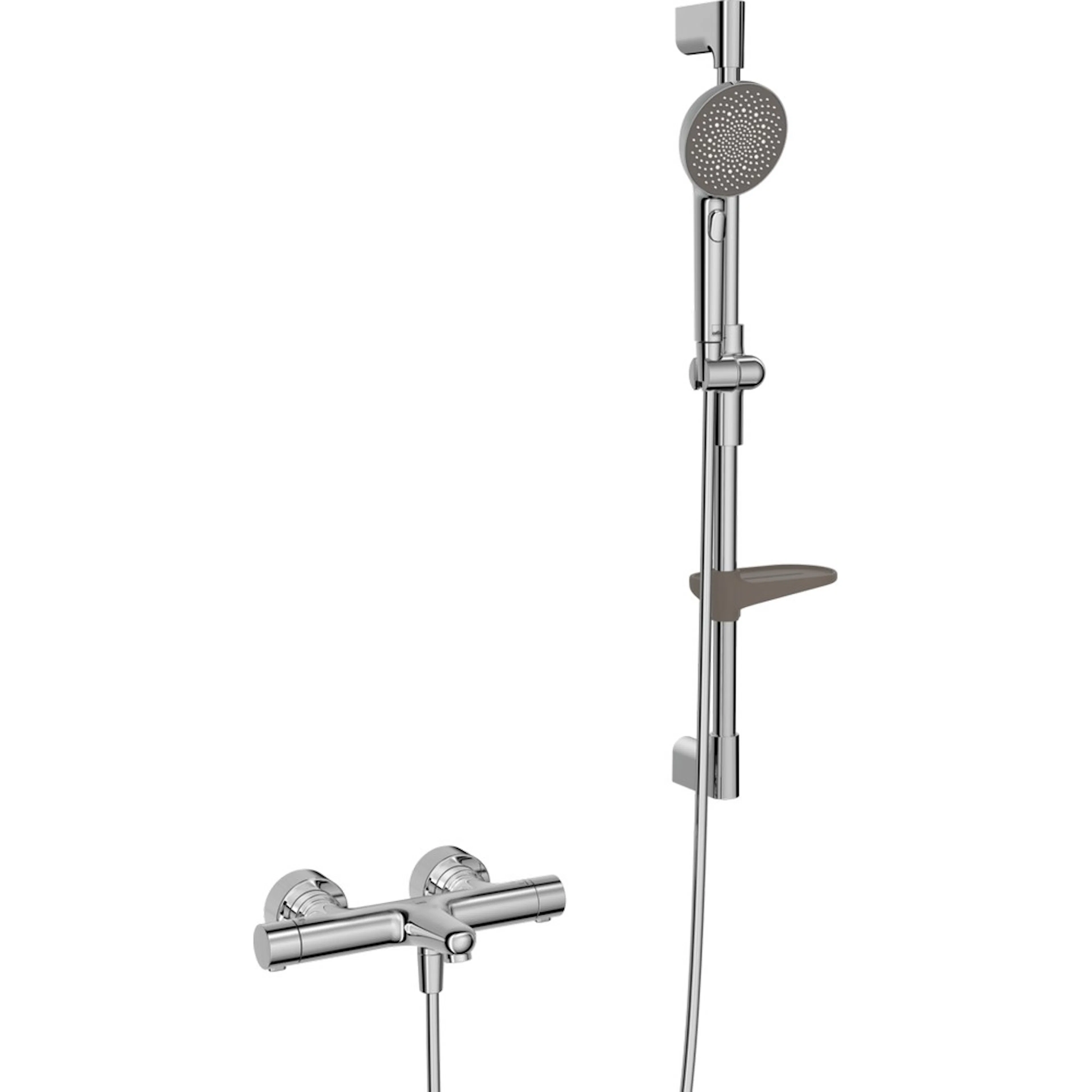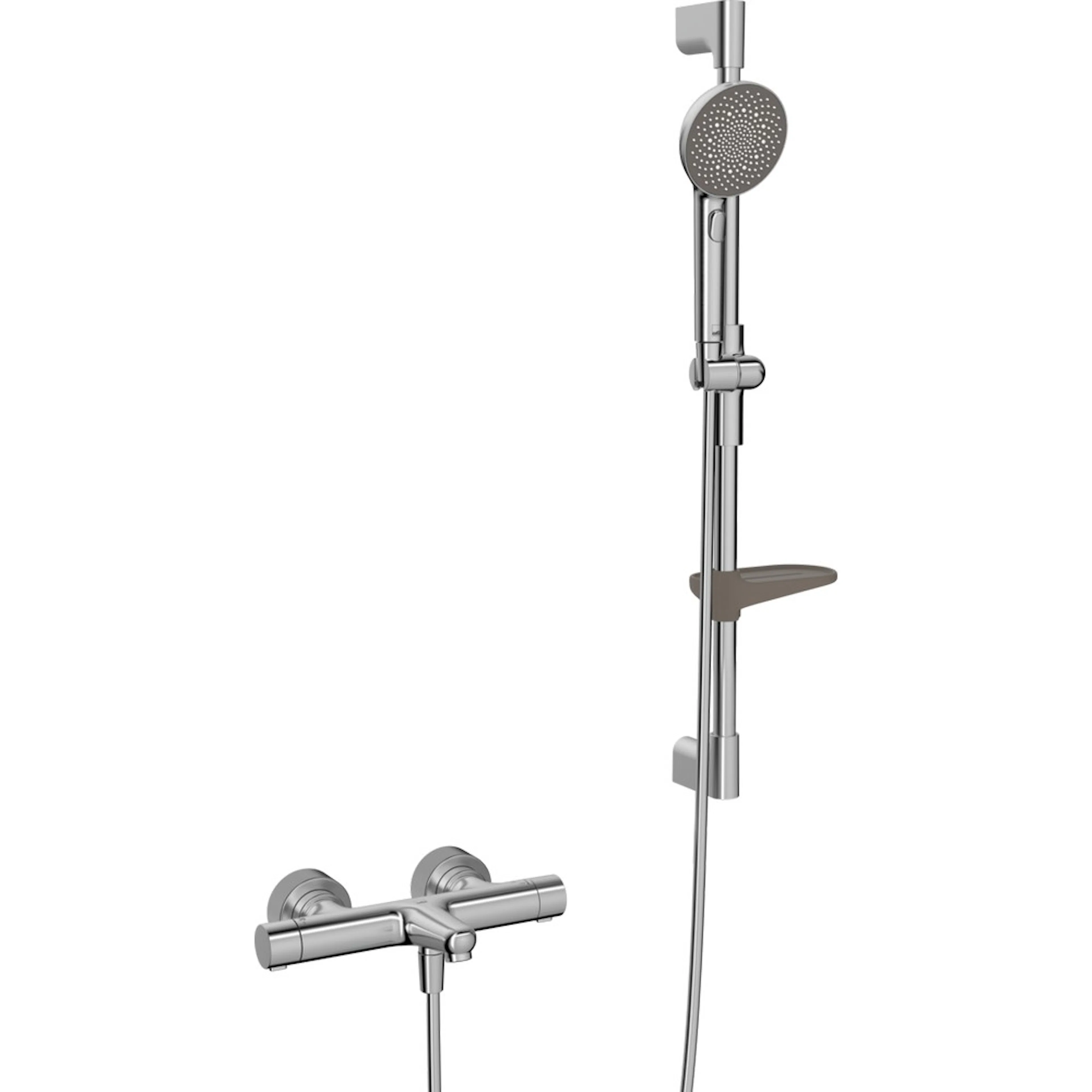 Duschset Oras Aurelia med Bad- och duschblandare är ett duschpaket innehållande termostatblandare för kar/dusch, anslutning 150 cc med G 3/4" inv.g., lekande mutter med plantätning. samt duschset. Blandaren har användarvänliga vred med temperaturbegränsningsknapp 38°, samt flödeskontroll. Utrustad med backventiler och smutsfilter. Duschset med Ecoflöde, duschslang 1750 mm, duschstång, hållare för handdusch, flexibla/fasta väggfästen och handdusch med 3 strållägen för en komfortabel duschupplevelse. Handduschen är enkel att rengöra tack vare sina antikalk-munstycken. De perfekt utformade vreden fulländar designen utan att förlora dess funktionalitet. Det blir enkelt att justera flödet och temperaturen för den perfekta duschupplevelsen.