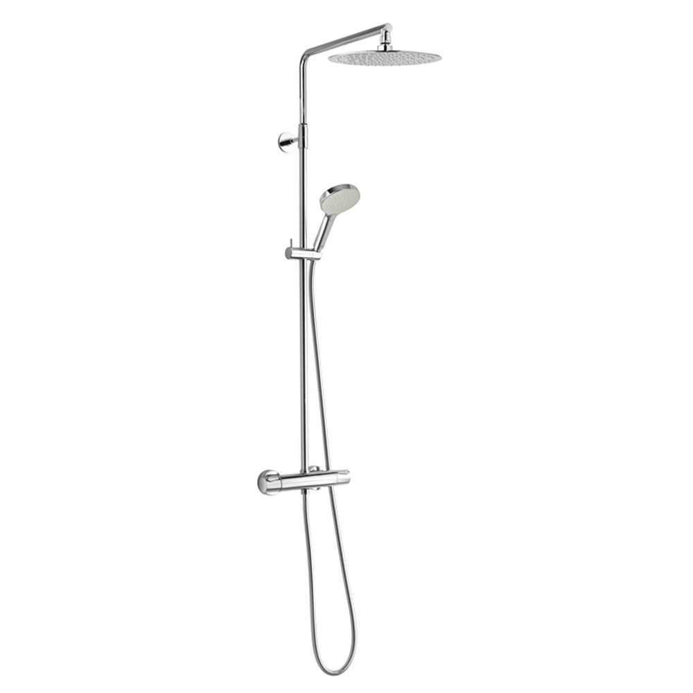 Takduschset Silhouet från Damixa är ett komplett duschset med blandare, takdusch, duschstång och en handdusch med tre stråltyper och duschslang. Det stilrena takduschsetet har flera praktiska funktioner som skållningsskydd, Eco-Click och Rub-Clean.