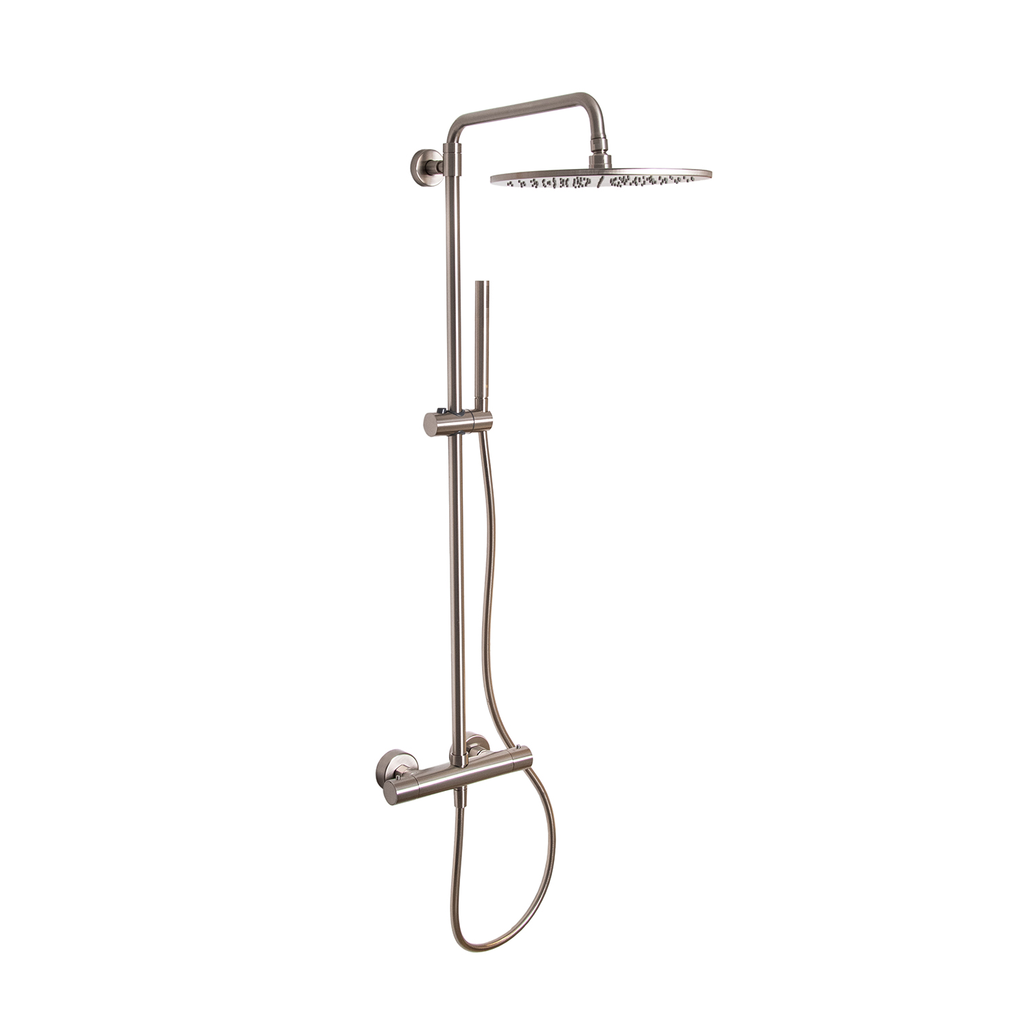 Takduschset LH Turano är ett stilrent duschset med en blandare (cc-mått 150 mm), en rund takdusch (Ø300 mm), en elegant pinnhanddusch samt duschslang och duschstång. En justermån på 550 mm gör det möjligt att passa in duschen för olika takhöjder. Med detta moderna duschset kan du njuta av en avslappnande och uppfriskande dusch. Finns i flera olika färger.