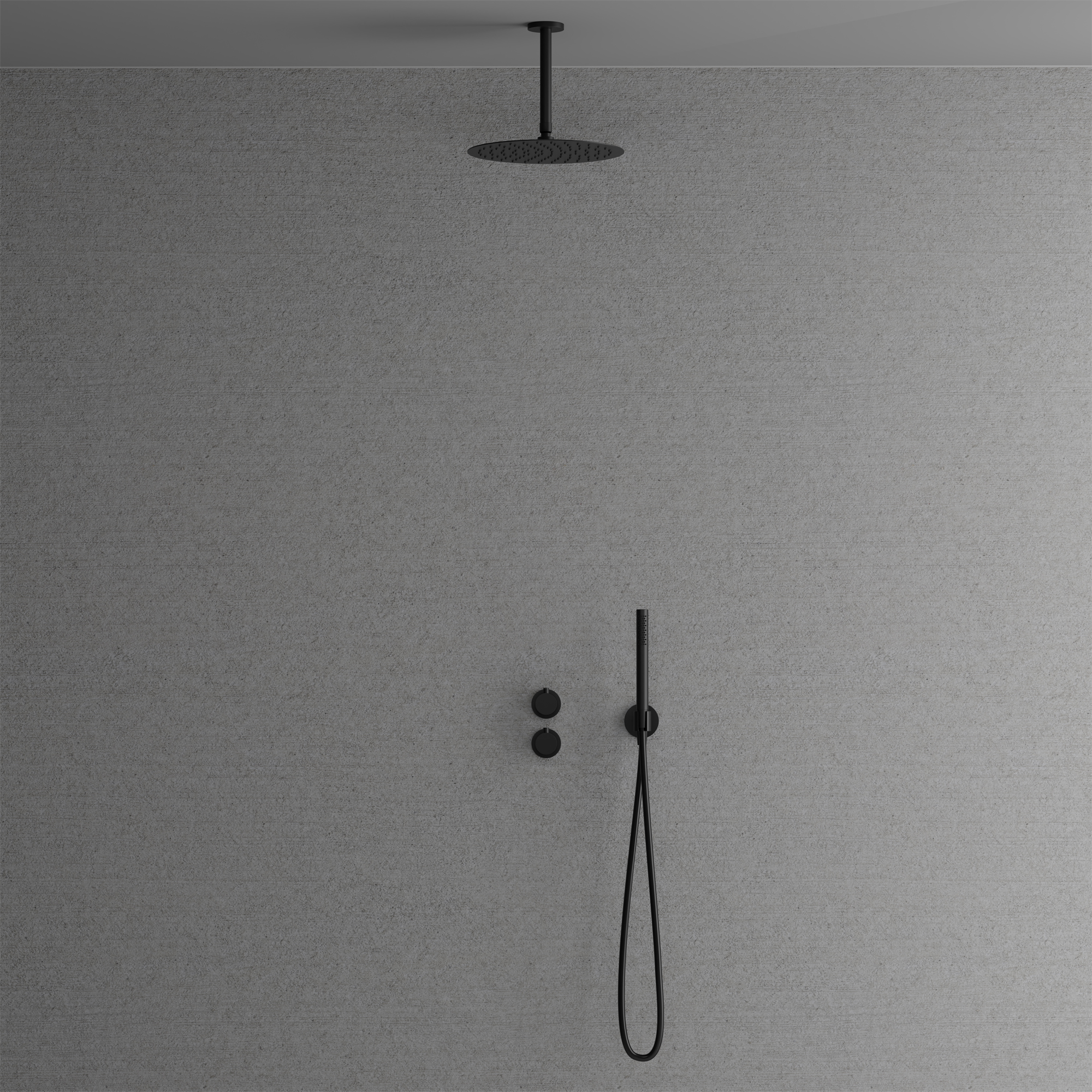 Dold monteringen bakom vägg ger badrummet ett minimalistiskt och harmoniskt intryck. Inkluderar en tunn takmonterad taksil med generös omkrets samt en cylindrisk handdusch som avger ett mjukt behagligt vattenflöde med bred spridning. Tidlös design som samspelar med ett skandinaviskt formspråk.