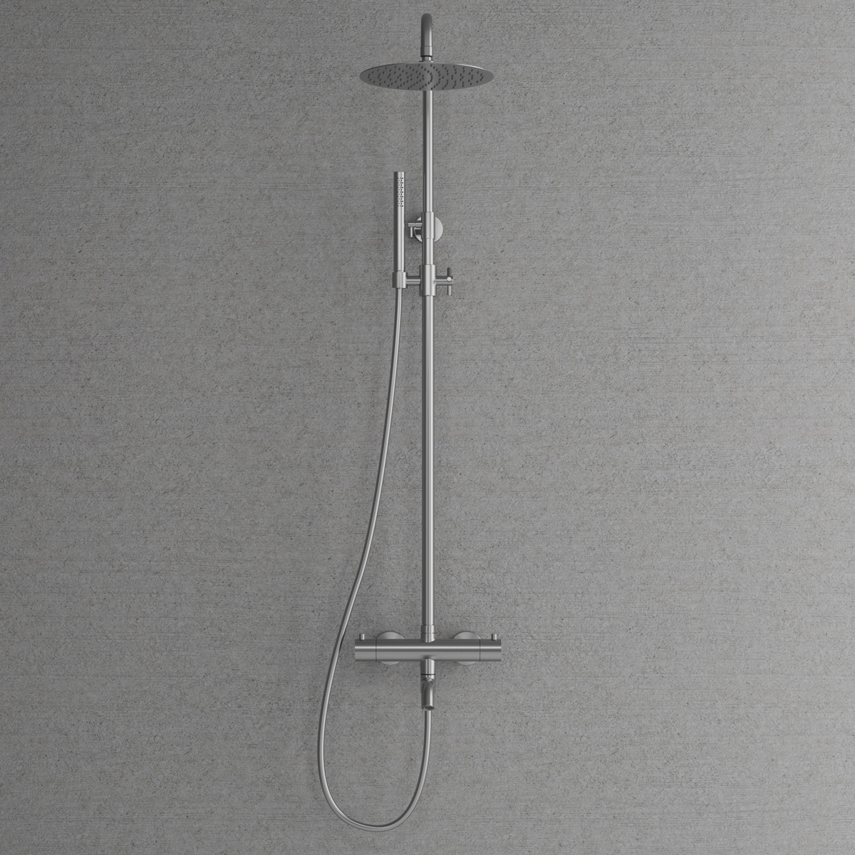 Takduschset Scandtap Steel Pleasure 3 är tillverkat i rostfritt stål med 150 cc termostatblandare med integrerad omkastare samt svängbar och infällbar badkarspip. Duschslangen är utrustad med anti-twist. Vid montering placeras vanligen blandaren lågt ner i höjd med badkaret, det kan då behövas ett förlängningsrör som höjer takduschen. Viktigt att förlängningsröret Steel Pleasure Extension Pipe monteras i samband med blandarens montering.