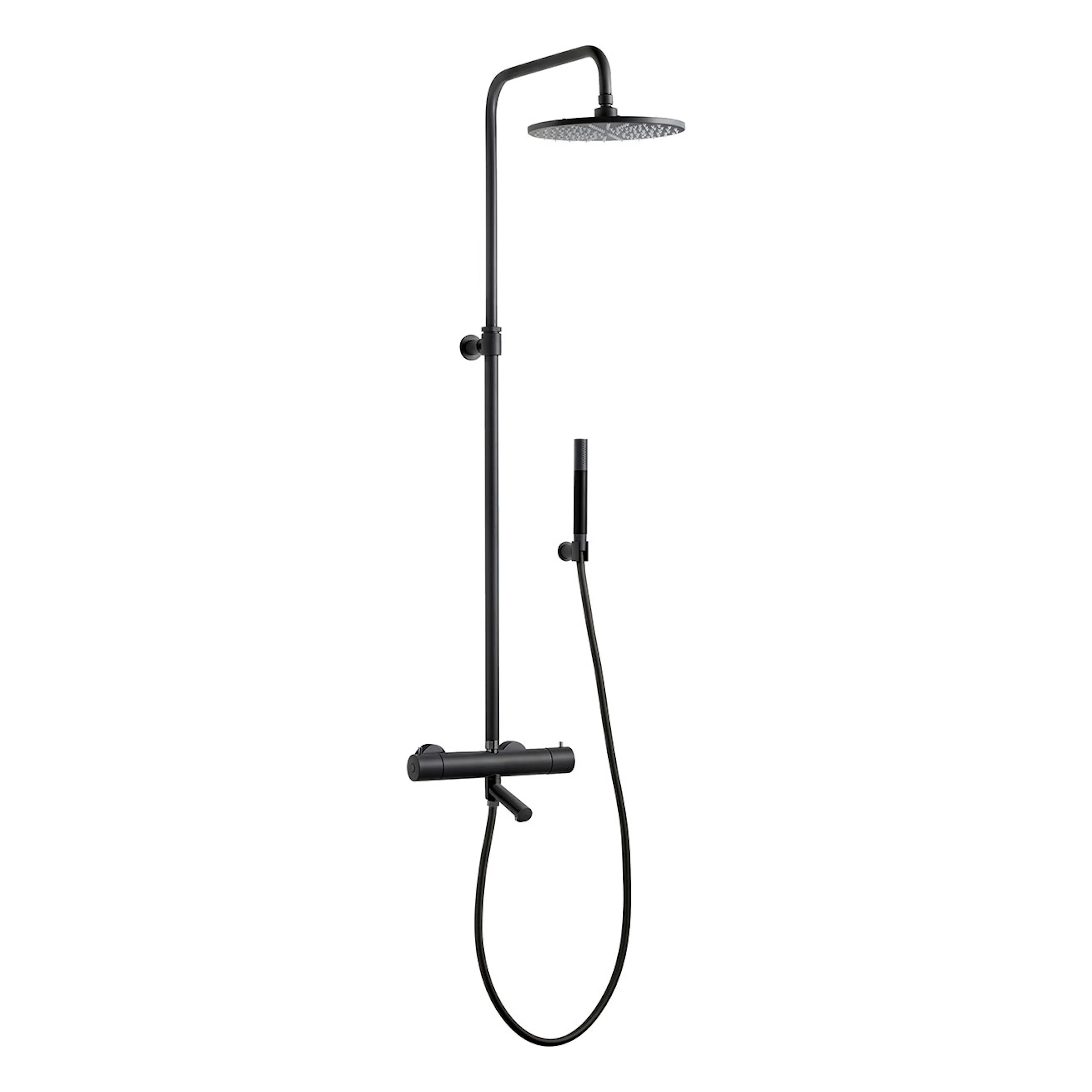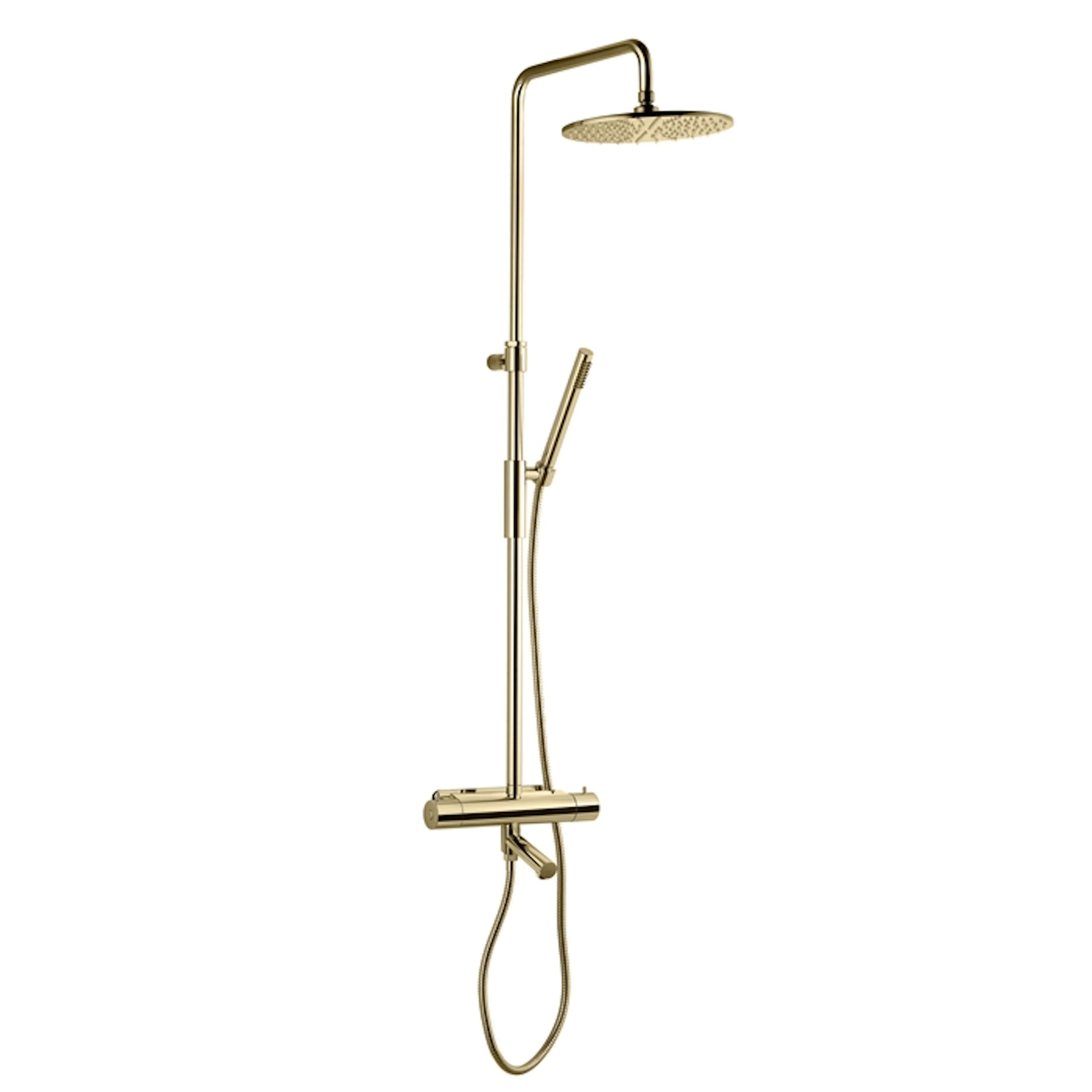 Takduschset Tapwell TVM2200-150 är ett komplett takduschset med tryckbalanserad tvågrepps termostatblandare, takdusch, handdusch och duschslang. Duschsetets höjd kan justeras mellan 1230-1710 mm.