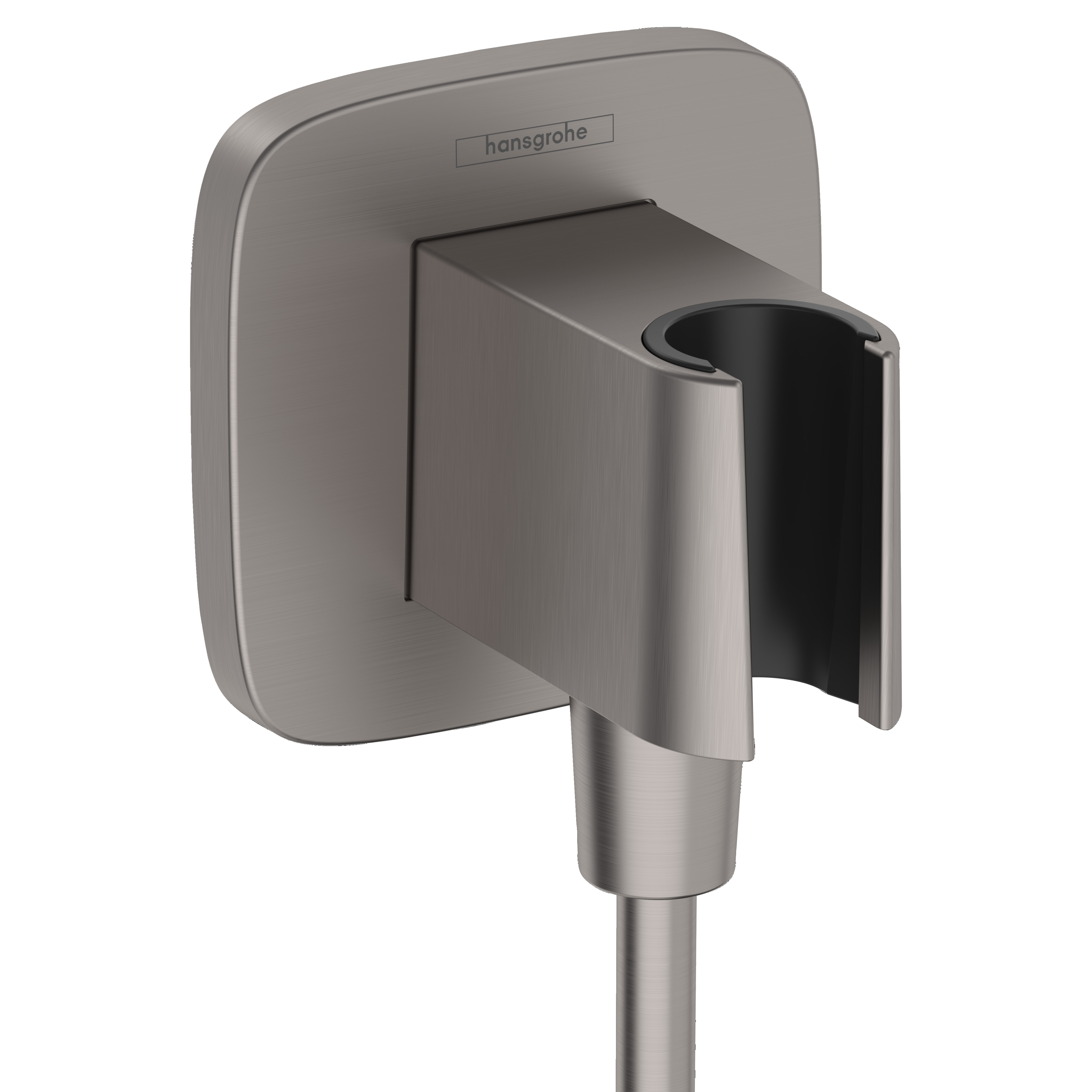 Duschhållare Hansgrohe FixFit Porter Q med Slangvinkel är en elegant anslutningsvinkel för duschslangar med hållare för handduschen. Den passar för inbyggda duschar.