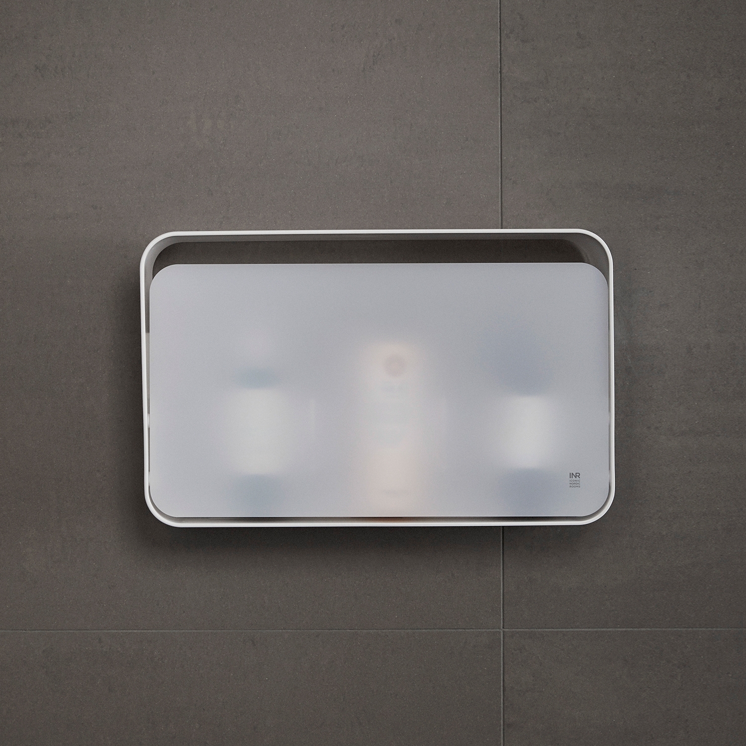 Duschhylla INR Nest är en duschhylla som håller dina flaskor i tryggt förvar på väggen i eller utanför duschen. Vippa ut den frostade luckan för att öppna och få en bra överblick över dina duschprodukter. Hyllan är tillverkad av aluminium vilket gör den både hållbar och lättstädad. Botten är försedd med avrinningshål för enkel rengöring. Den kan skruvas eller limmas upp på väggen.