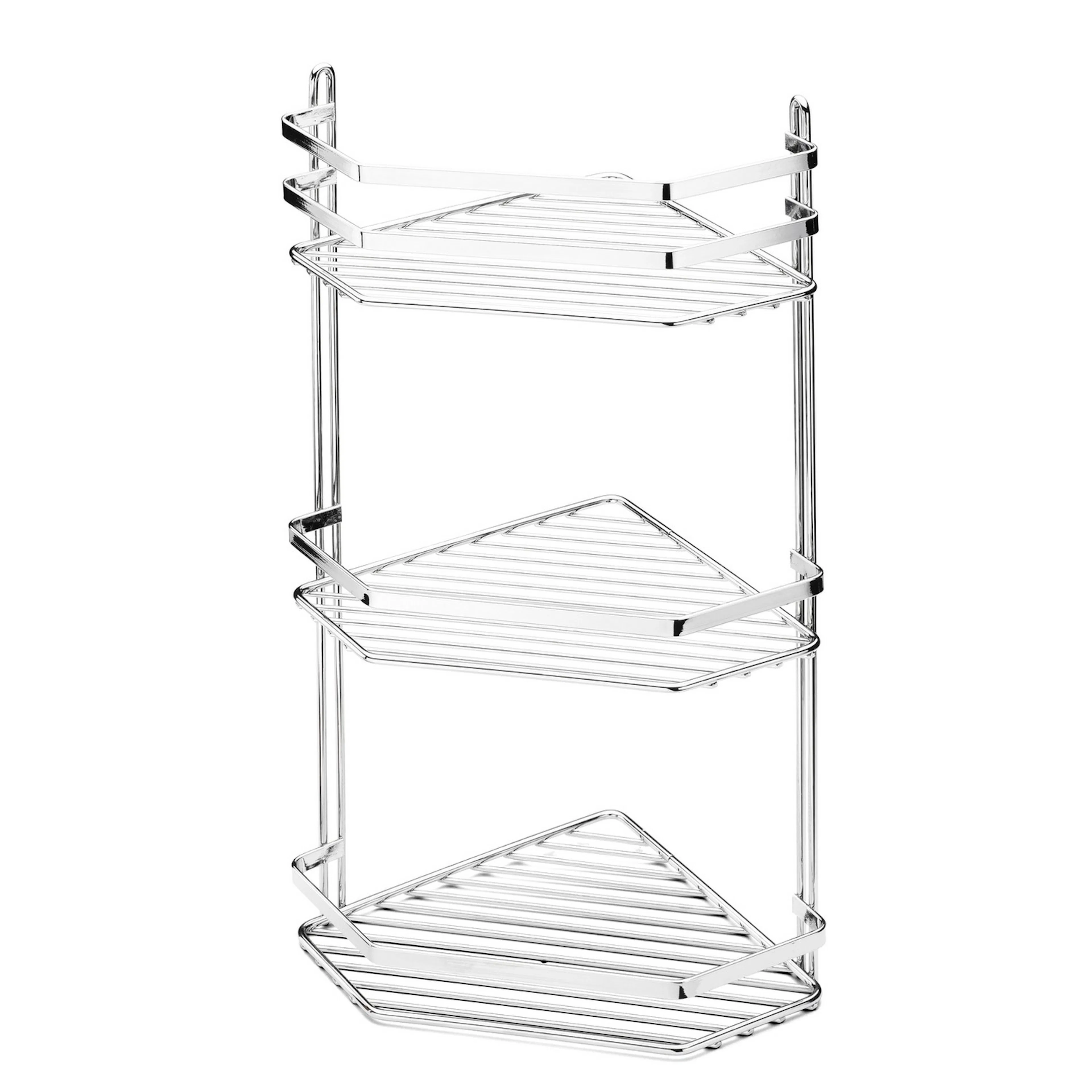 Duschkorg i rostfritt stål. För montering i hörn. Skruvfastsättning, skruv ingår ej. Med tre hyllplan för praktisk förvaring i duschutrymmet. 3 års rostskyddsgaranti.