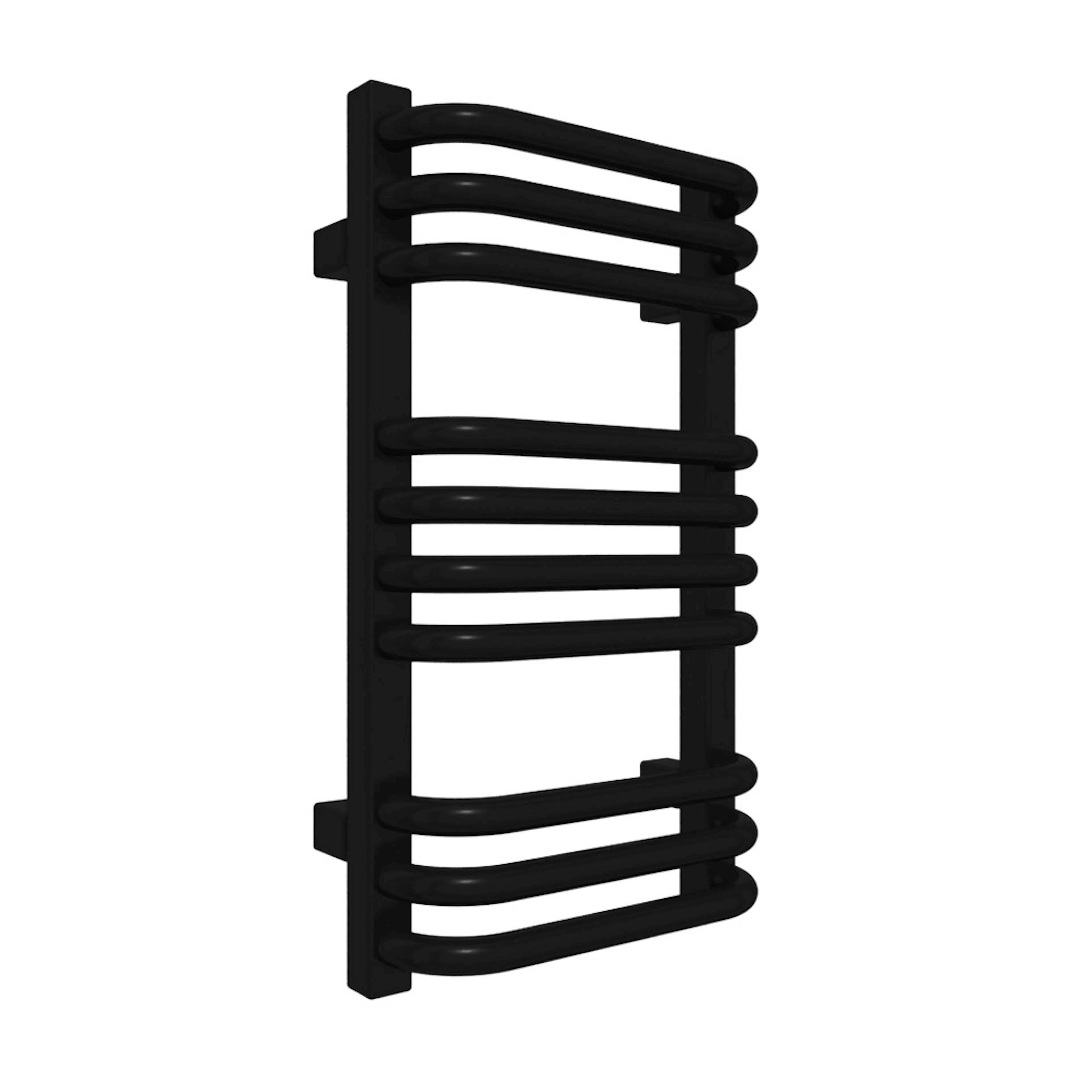 Med sina lätt utåtbuktande rör skapar Alex ett elegant intryck samtidigt som det blir lätt att komma åt, hänga upp och ta ner handdukarna. Handdukarna omfamnas av Alex och ges optimal möjlighet att torka effektivt.