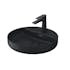 Tvättstället har ett centralt placerat hål för armaturen som ger en balanserad och minimalistisk estetik, medan den runda formen ger en mjuk och inbjudande känsla.