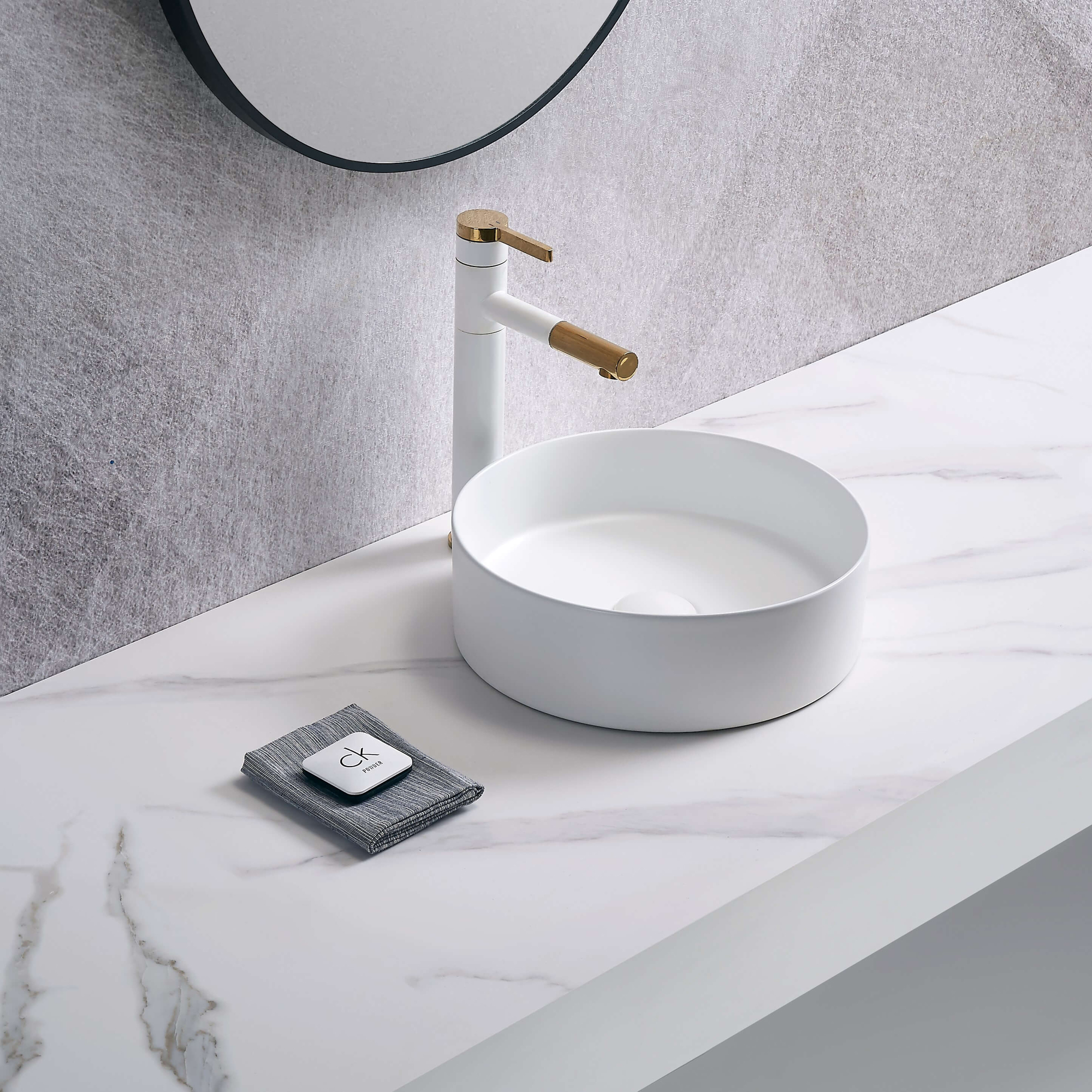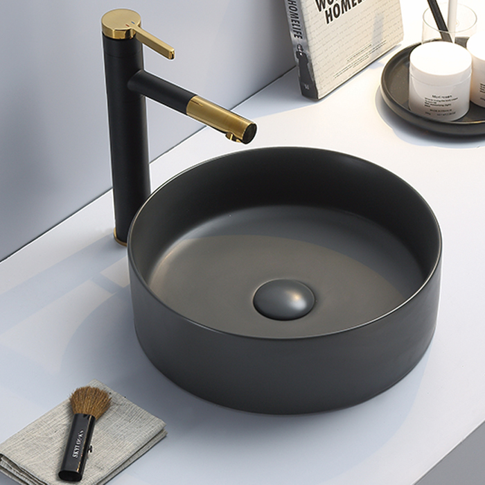 Tvättställ Nourk Runt Ovanpåliggande är stilrent och lätt att rengöra. Perfekt för ovanpåliggande montering och hållbart i porslin.