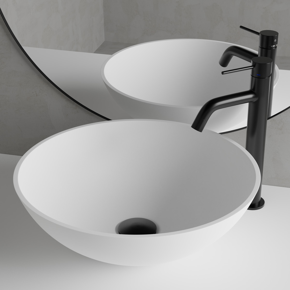 Tvättställspaket Scandtap R1 är ett stilrent tvättställspaket som kombinerar enkelhet med elegans. Tvättställspaketet består av ett tvättställ i solid surface från Scandtap Bathroom Concepts, tillsammans med tvättställsblandaren Voyage High och Pop-up ventil i rostfritt stål.