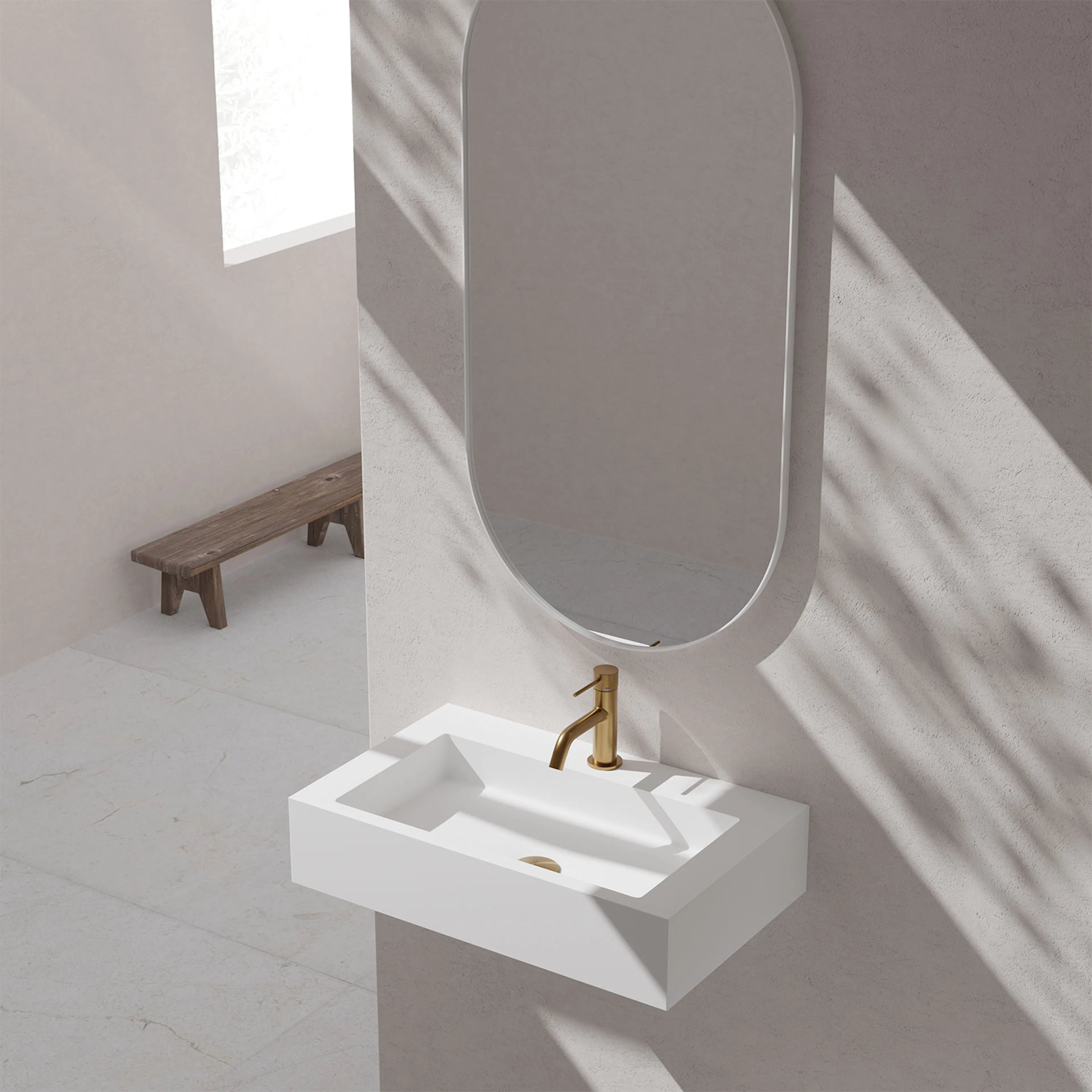 Tvättställspaket Scandtap Solid SW1Tvättställ: Vit, Spegel: Vit, Blandare och Bottenventil: Rust