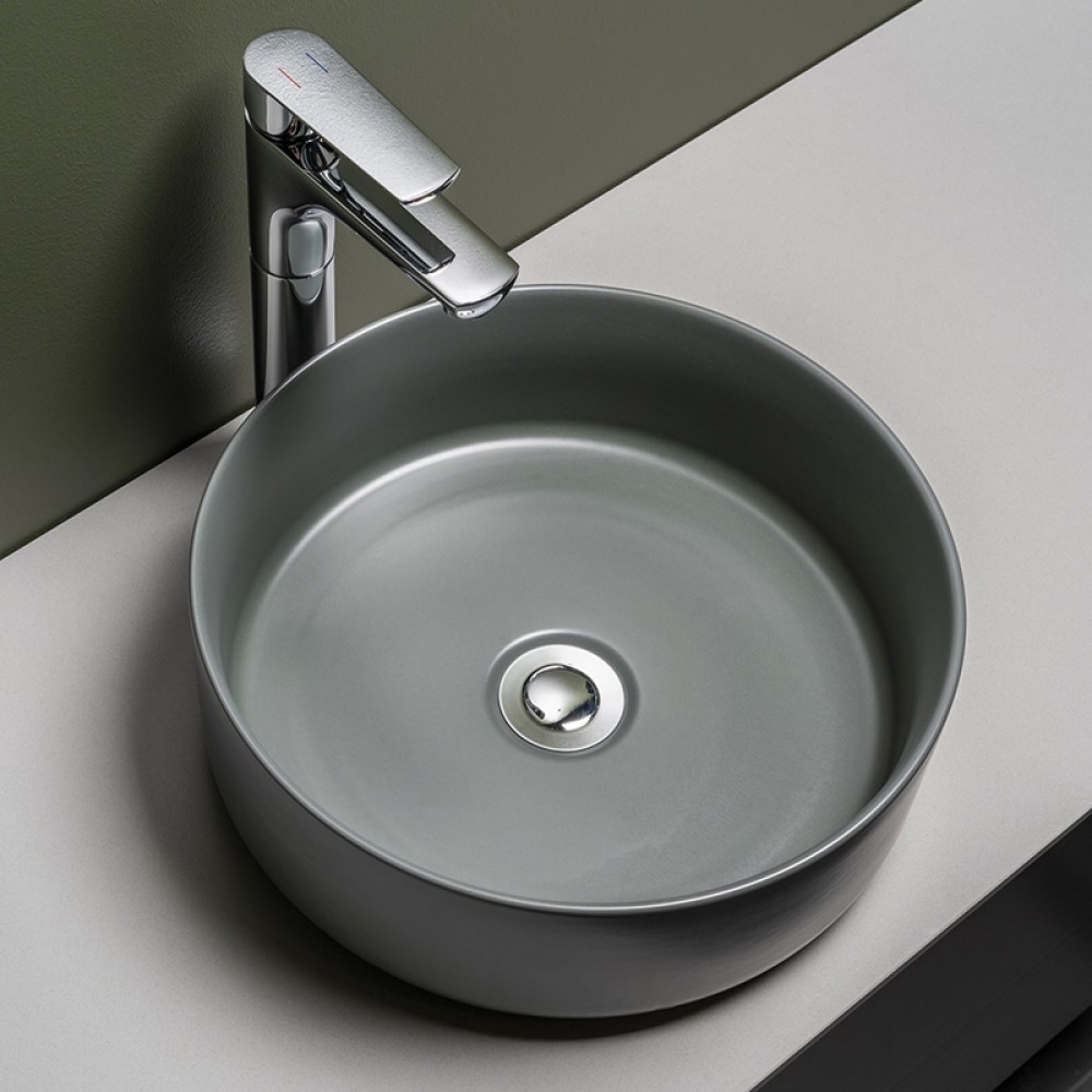 Tvättställ Hafa Circle är ett elegant och tunt fristående handfat i porslin med en matt yta.