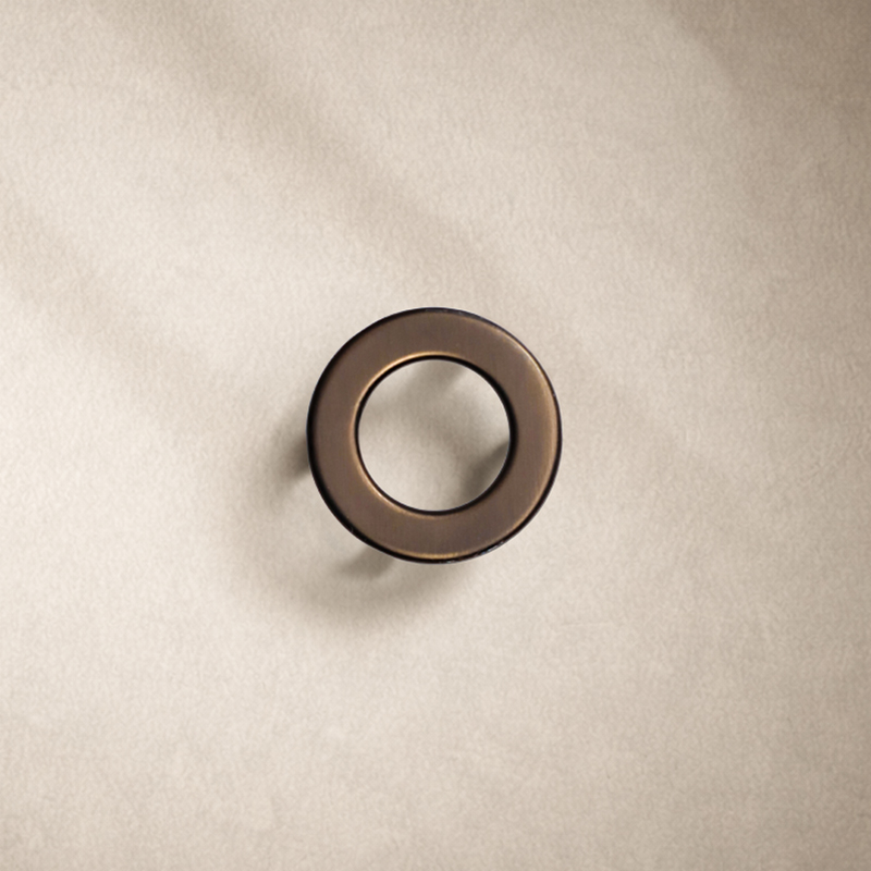 Westerbergs överfyllnadsring i högkvalitativ metall för tvättställ. Den behandlade ytan ger en hållbar och färgbeständig finish över tid. En del av Westerbergs kollektion Nexus.