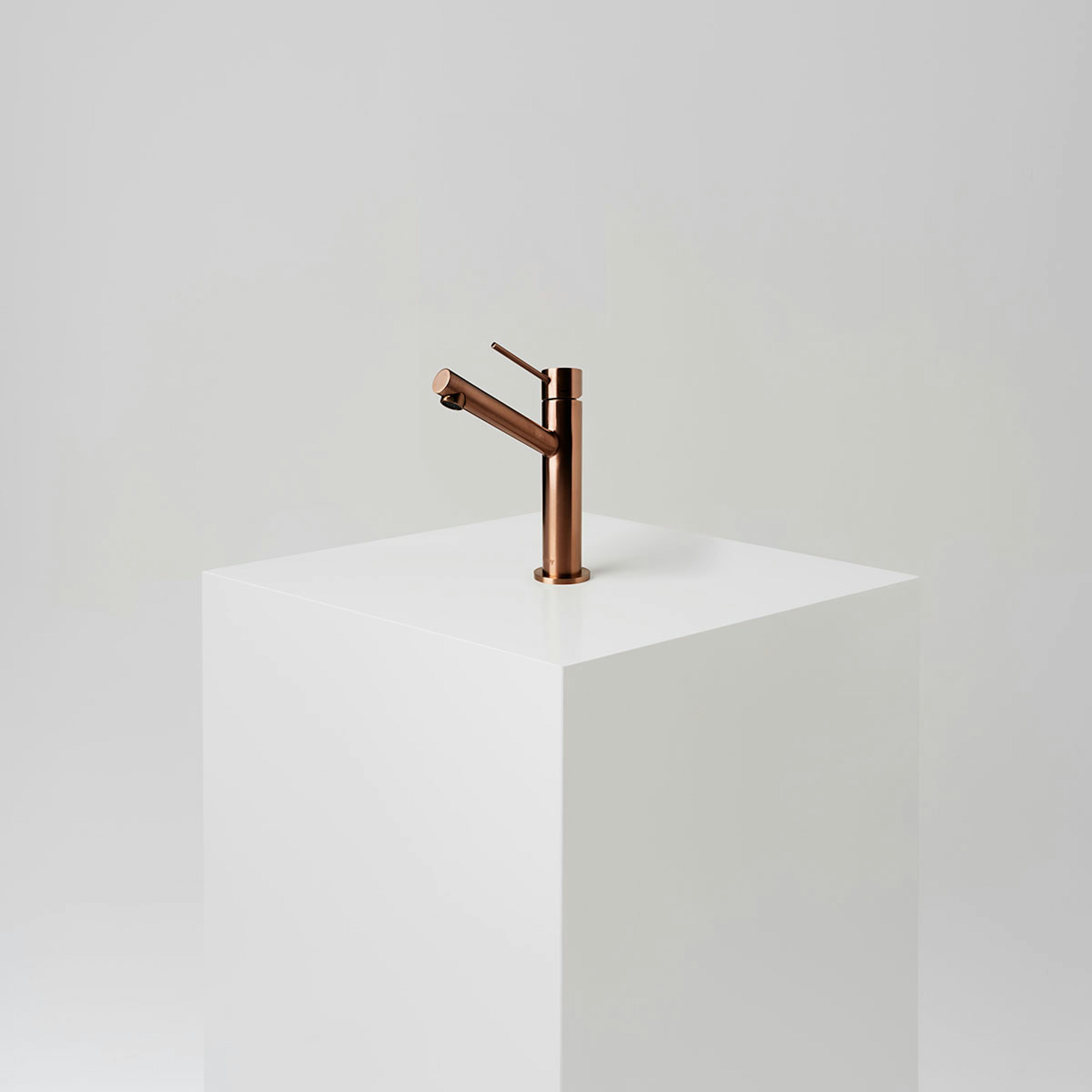 Infärgningen till varianterna Brushed Brass, Brushed Bronze och Matte Black sker via PVD-teknik vilket gör ytan många gånger starkare än till exempel krom och vanlig lackering. De ofärgade varianterna Brushed Stainless och Polished, med borstad respektive handpolerad yta, kommer i sin naturliga kulör som är något varmare än traditionella mässingsblandare med kromad yta – och betydligt tåligare.Matcha med bottenventil i samma finish.