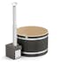 Utsidan har en monterad ytterpanel med jämn, hållbar och underhållsfri yta av återvunnen plast i en vacker färg. Den passar väl in i en modern miljö. Den släta ytan är enkel att rengöra, och materialet kräver ingen skötsel utöver tvätt. Ytterpanels nedre ändpanel möts en bit ovanför marken och skyddas av den svarta slitstarka bottenplattan av ABS plast som stilrent sveper runt badtunnan vid marken.